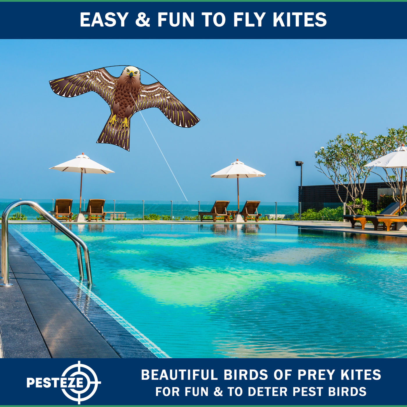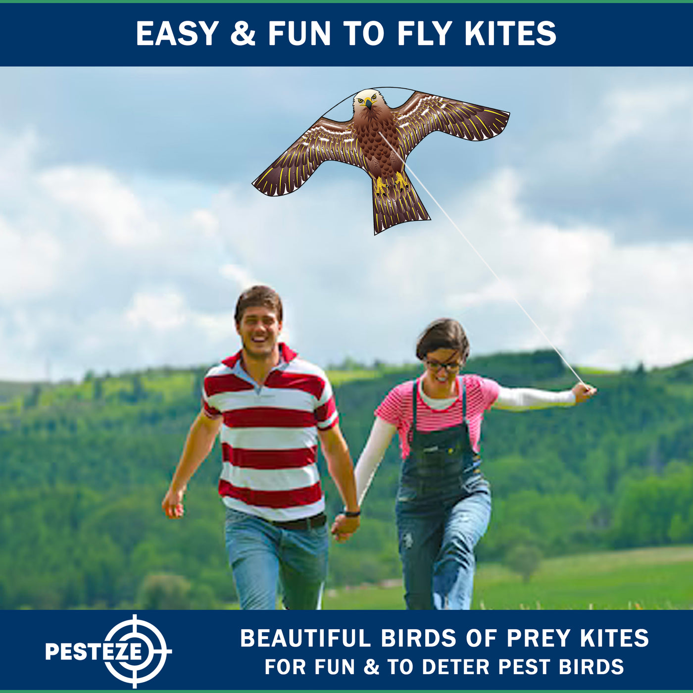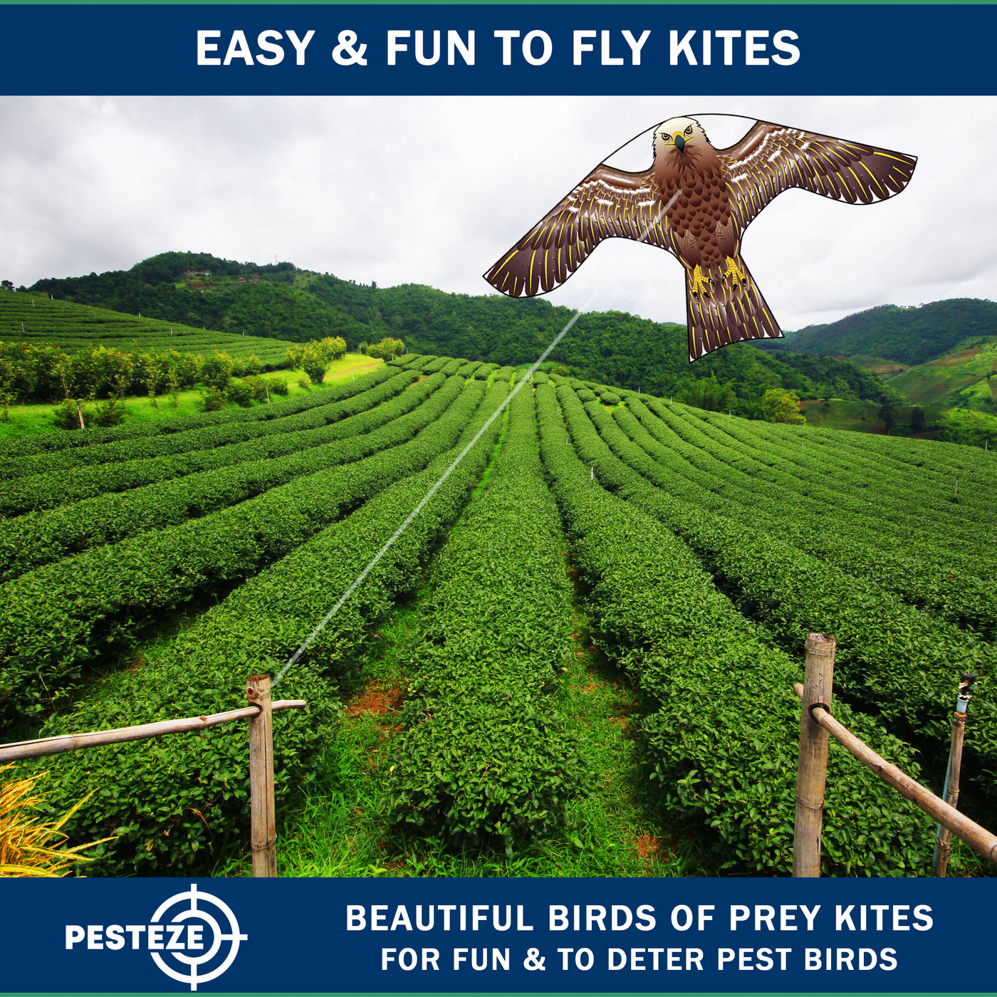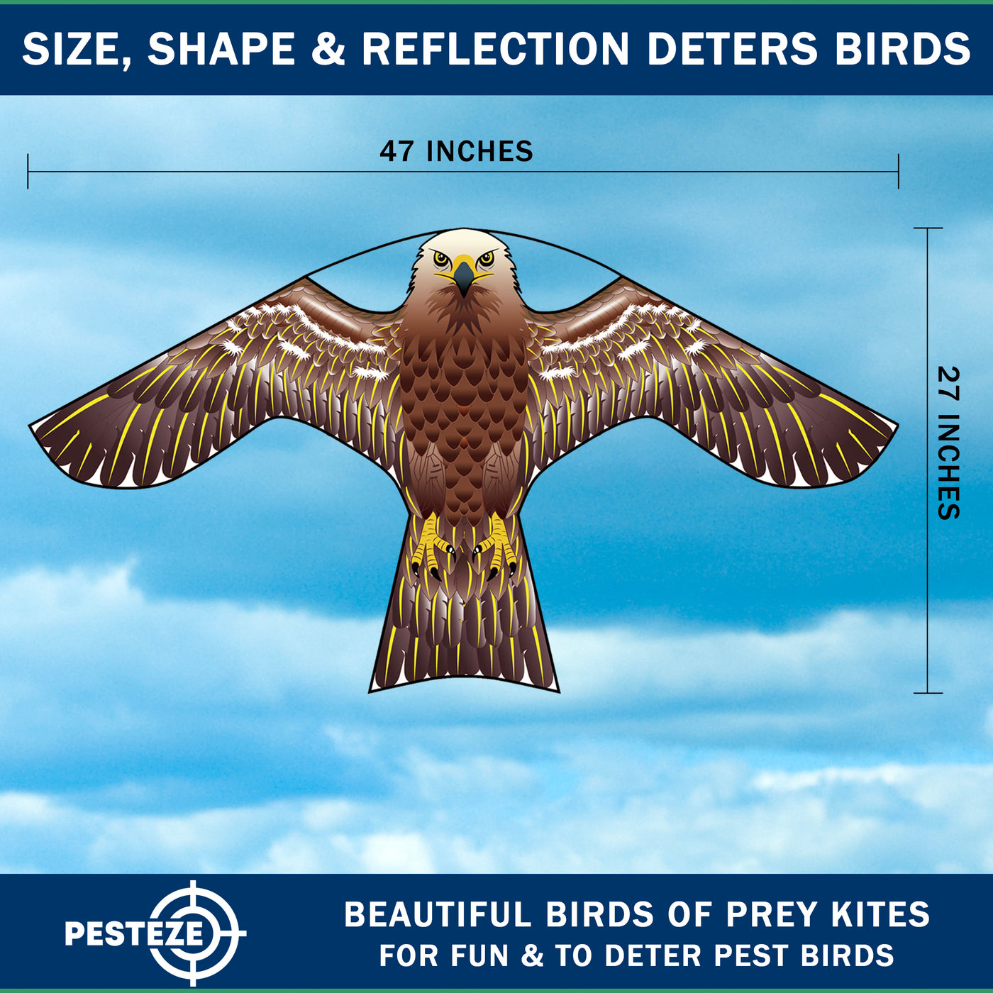 PESTEZE® USA [2 Pack Brown Color] Hawk 47x27 Inch Kite with 13 Ft Flagpole. Provides Humane Bird Deterrence in Yards & Farms. Protects Vegetables, Fruits & Crops from Pest Birds & Critters