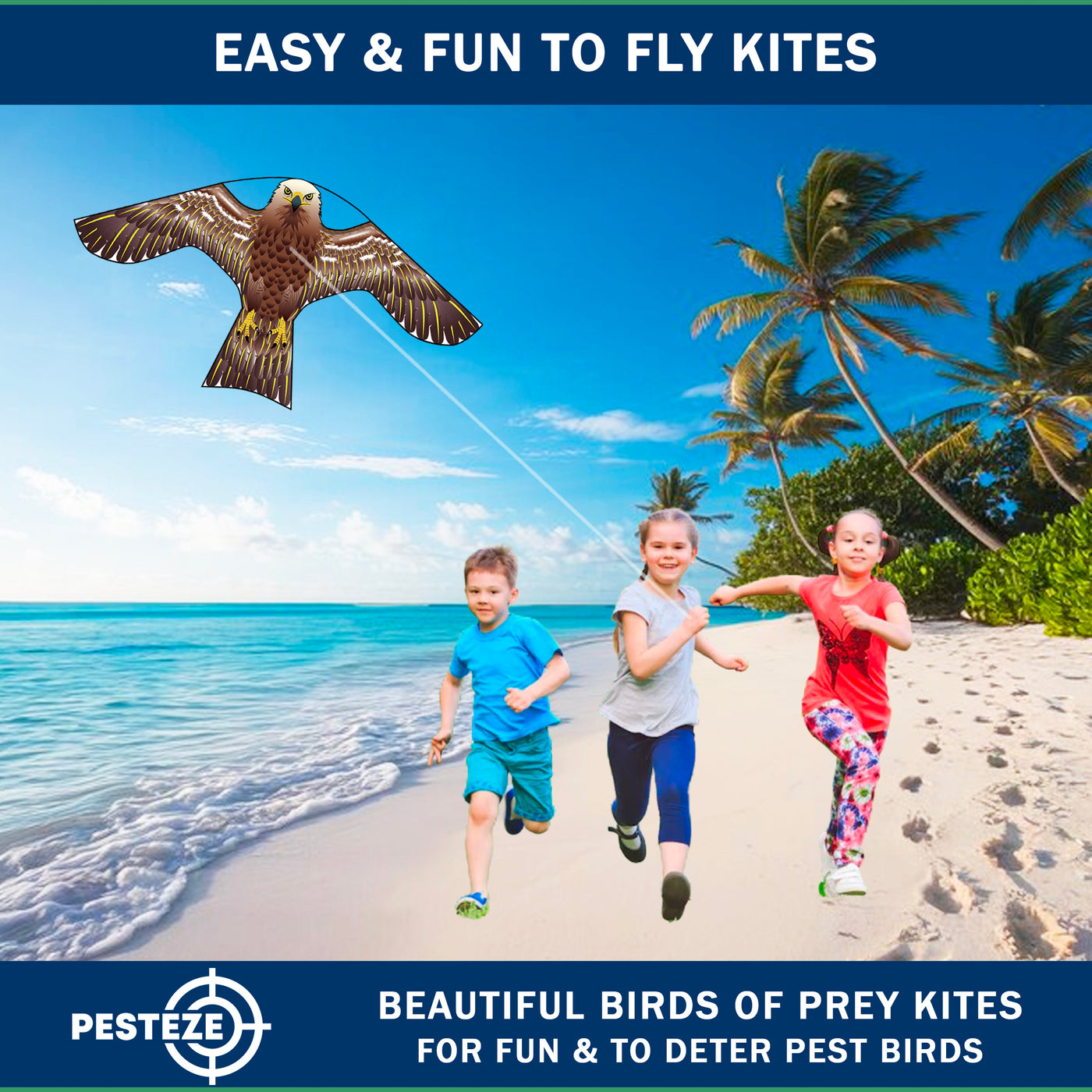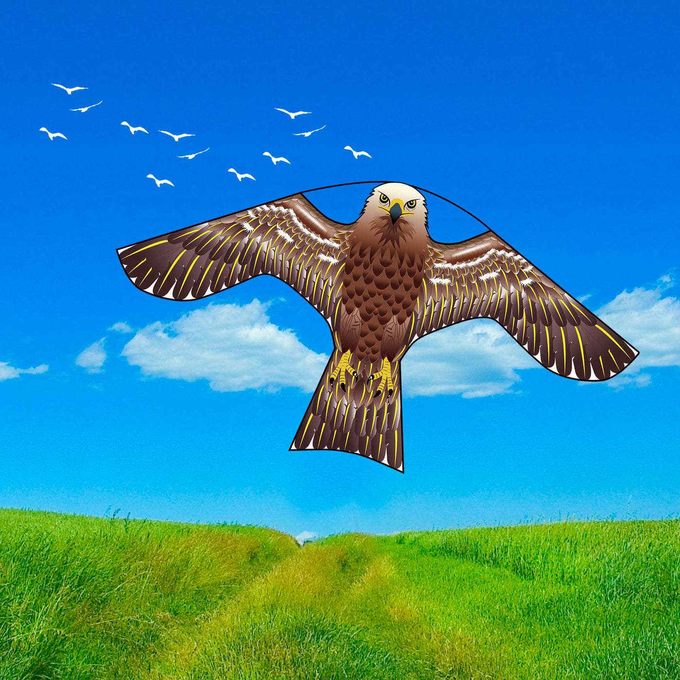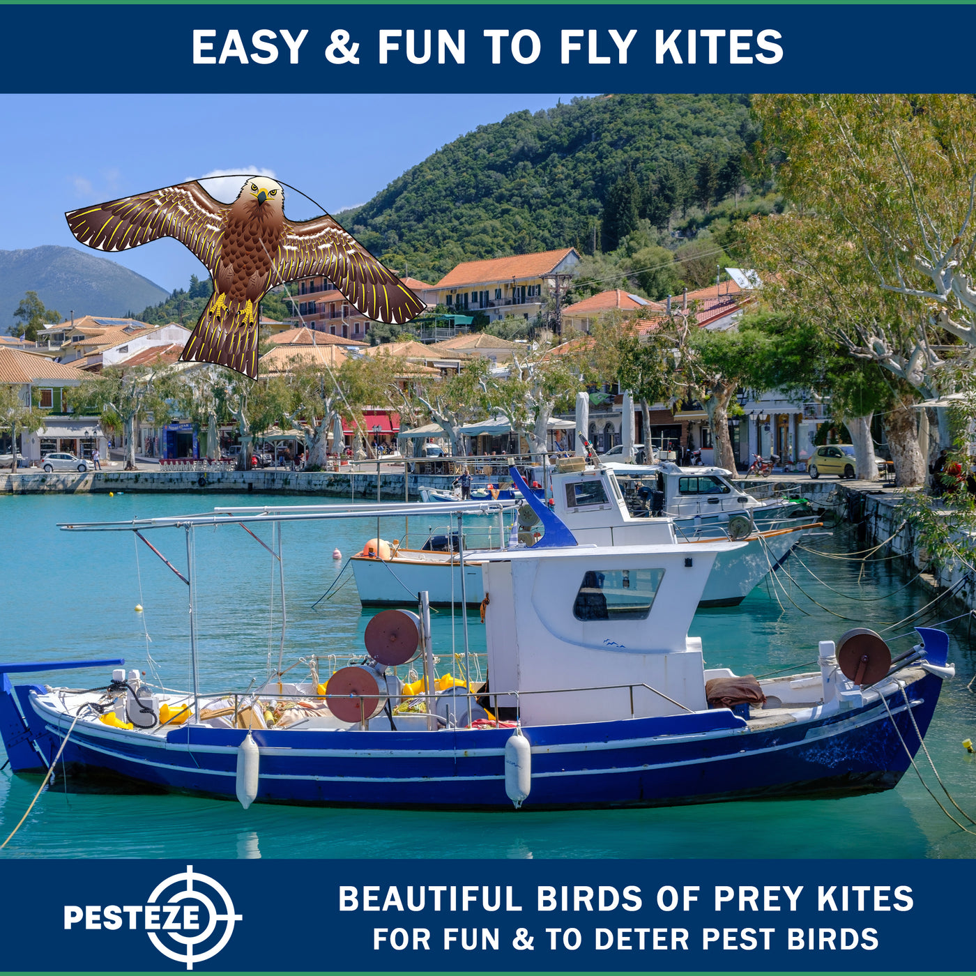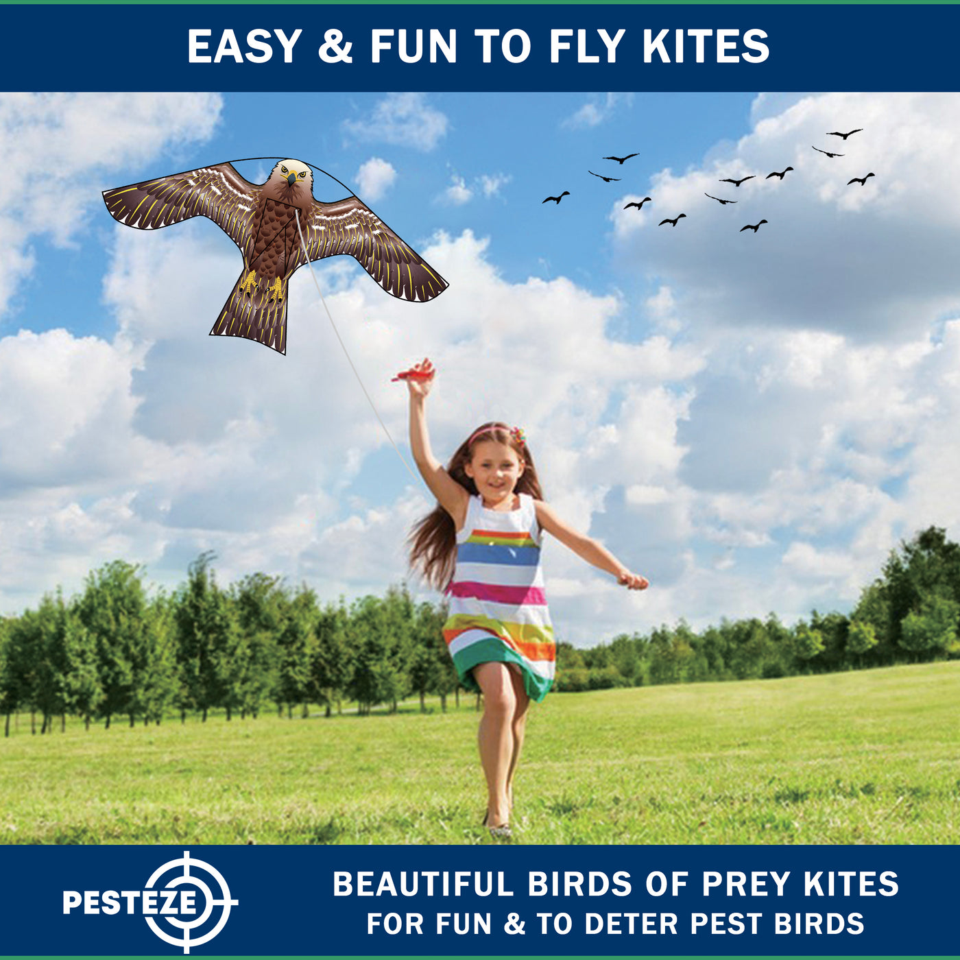 PESTEZE® USA [2 Pack Brown Color] Hawk 47x27 Inch Kite with 13 Ft Flagpole. Provides Humane Bird Deterrence in Yards & Farms. Protects Vegetables, Fruits & Crops from Pest Birds & Critters