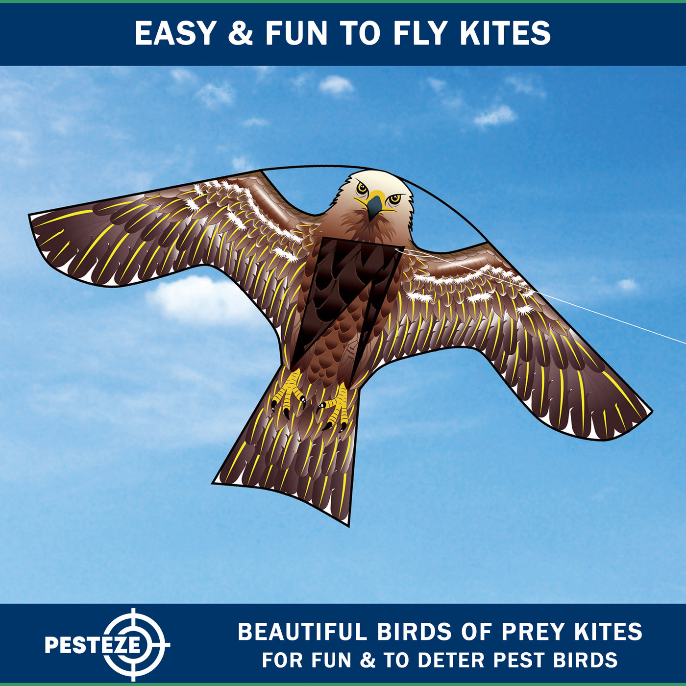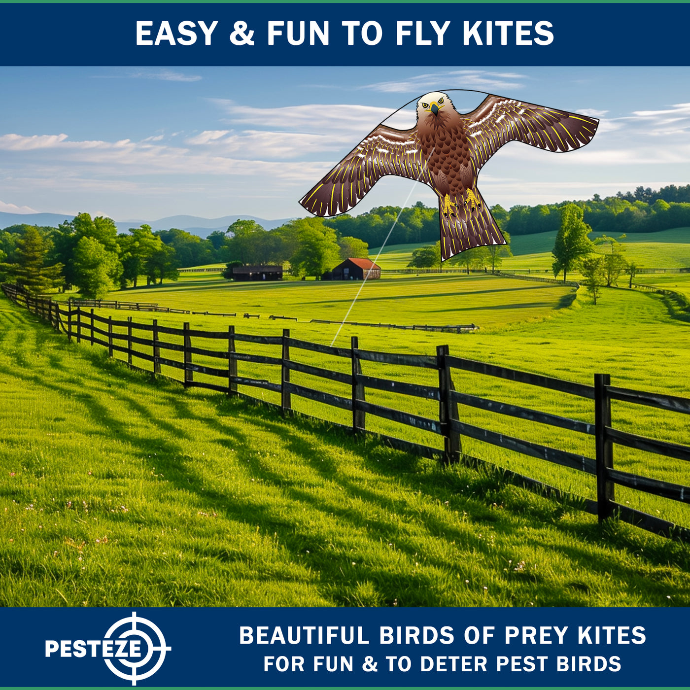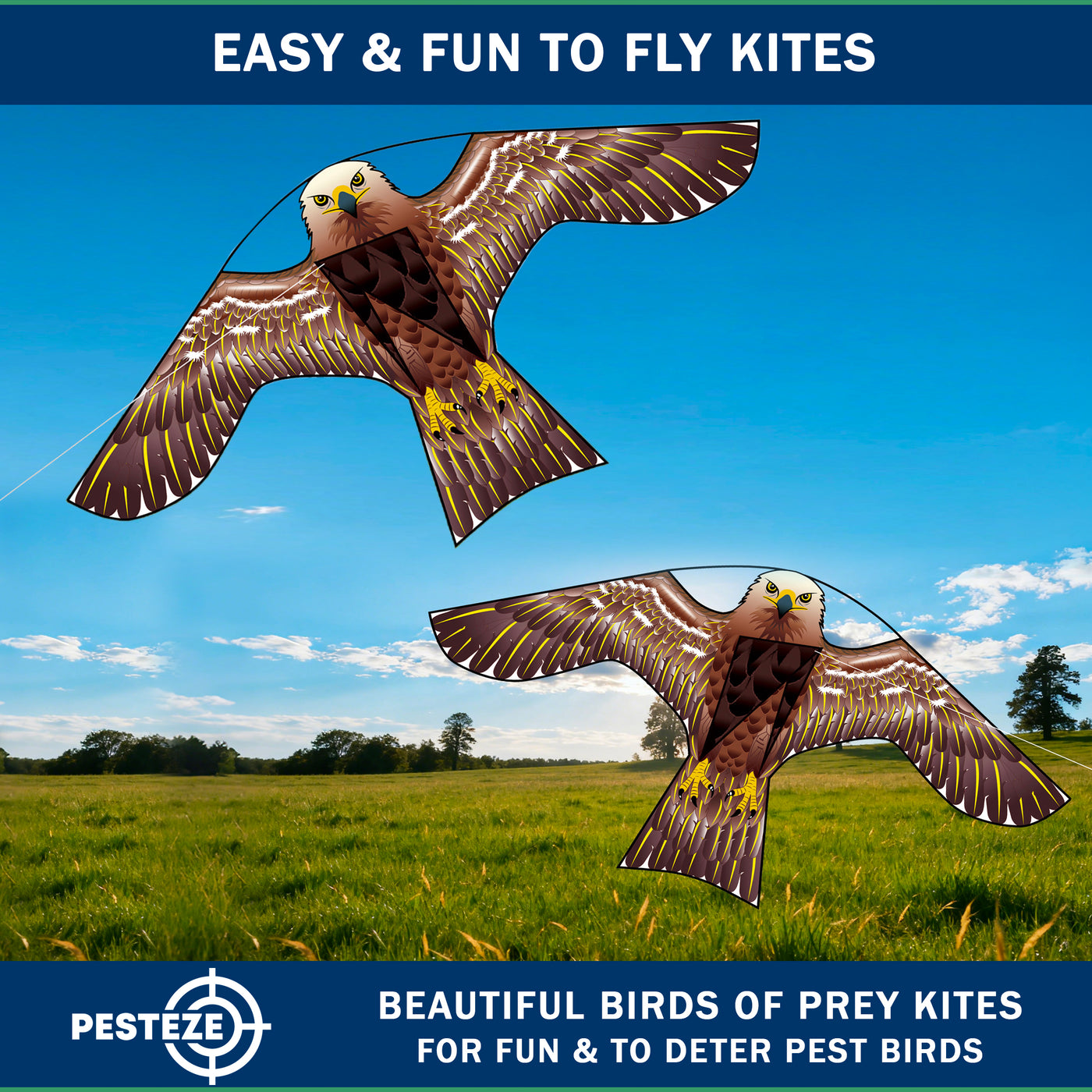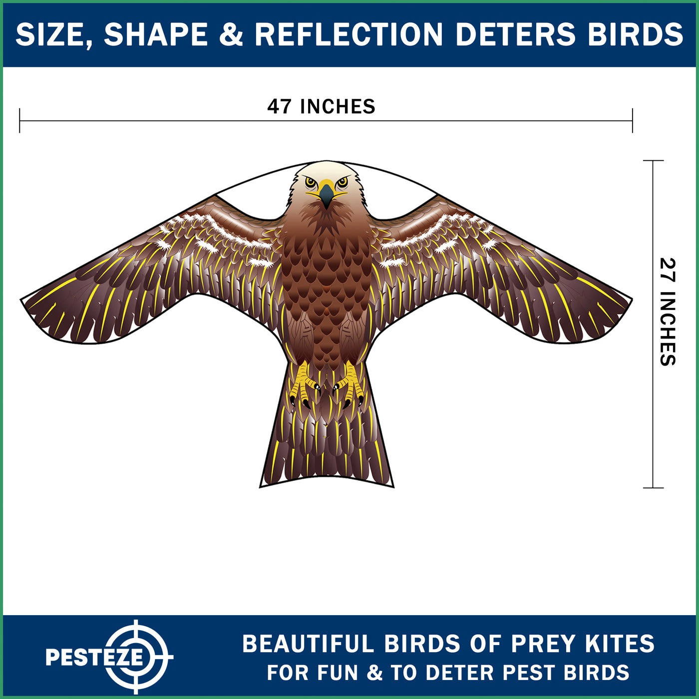 PESTEZE® USA [2 Pack Brown Color] Hawk Kite 47x27 Inch. EZ to Fly Fun Kite for Kids & Adults. Provides Humane Bird Deterrence in Yards & Farms. Protects Vegetables, Fruits & Crops from Pest Birds & Critters