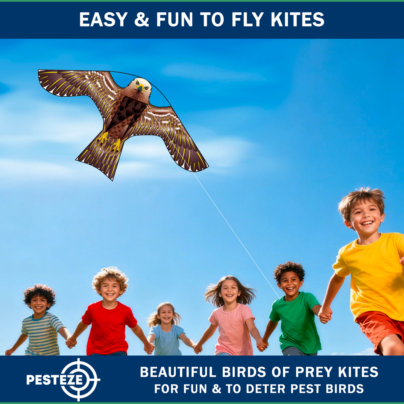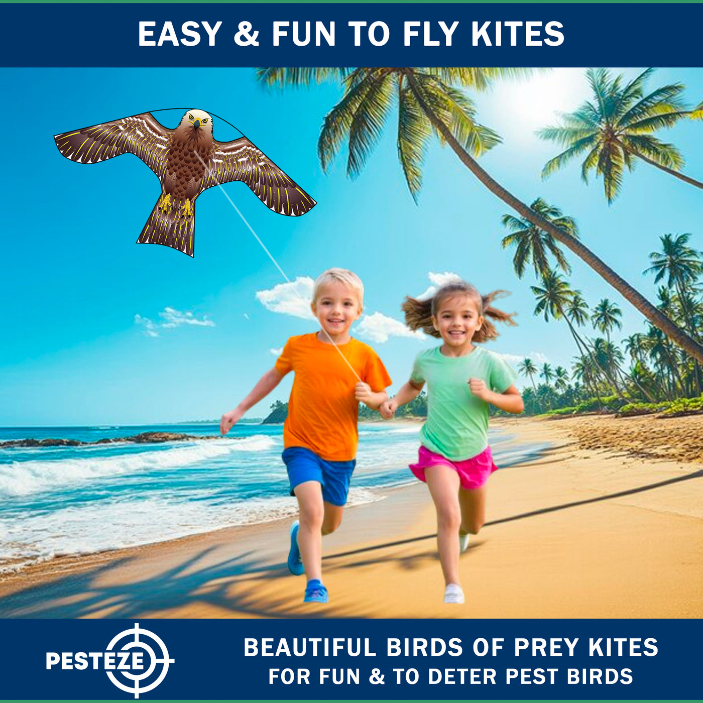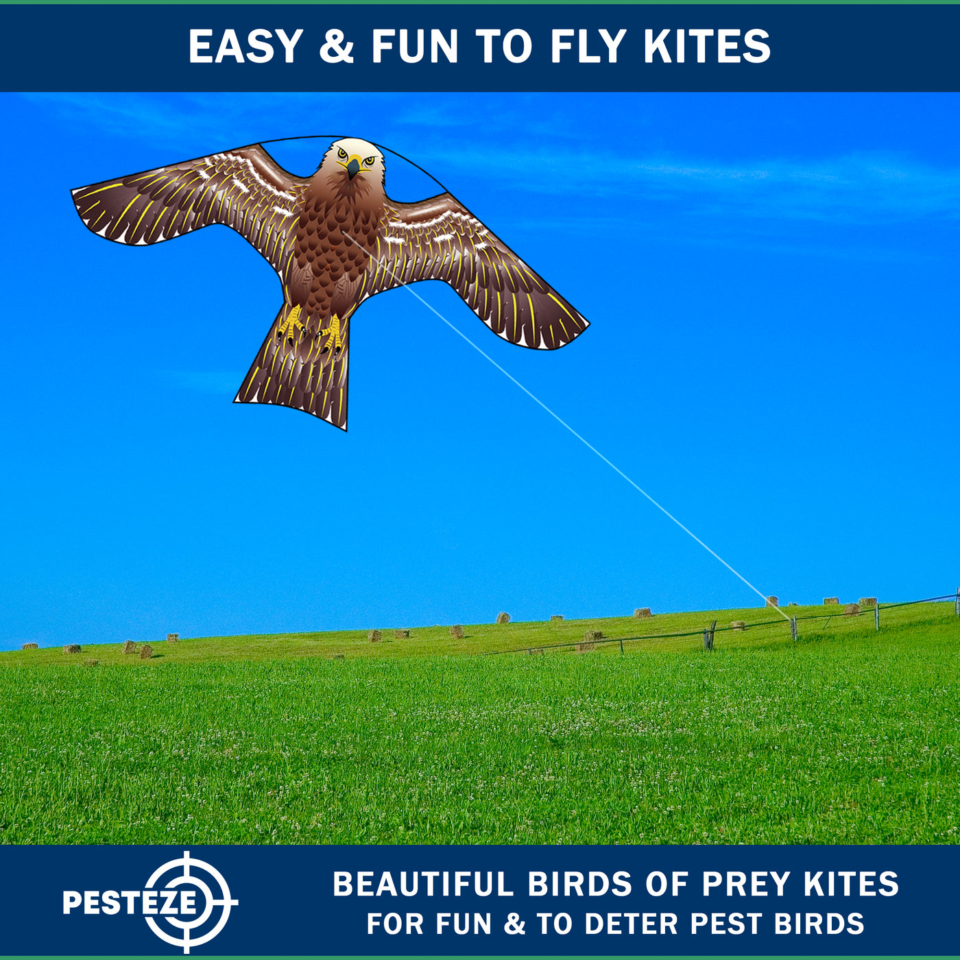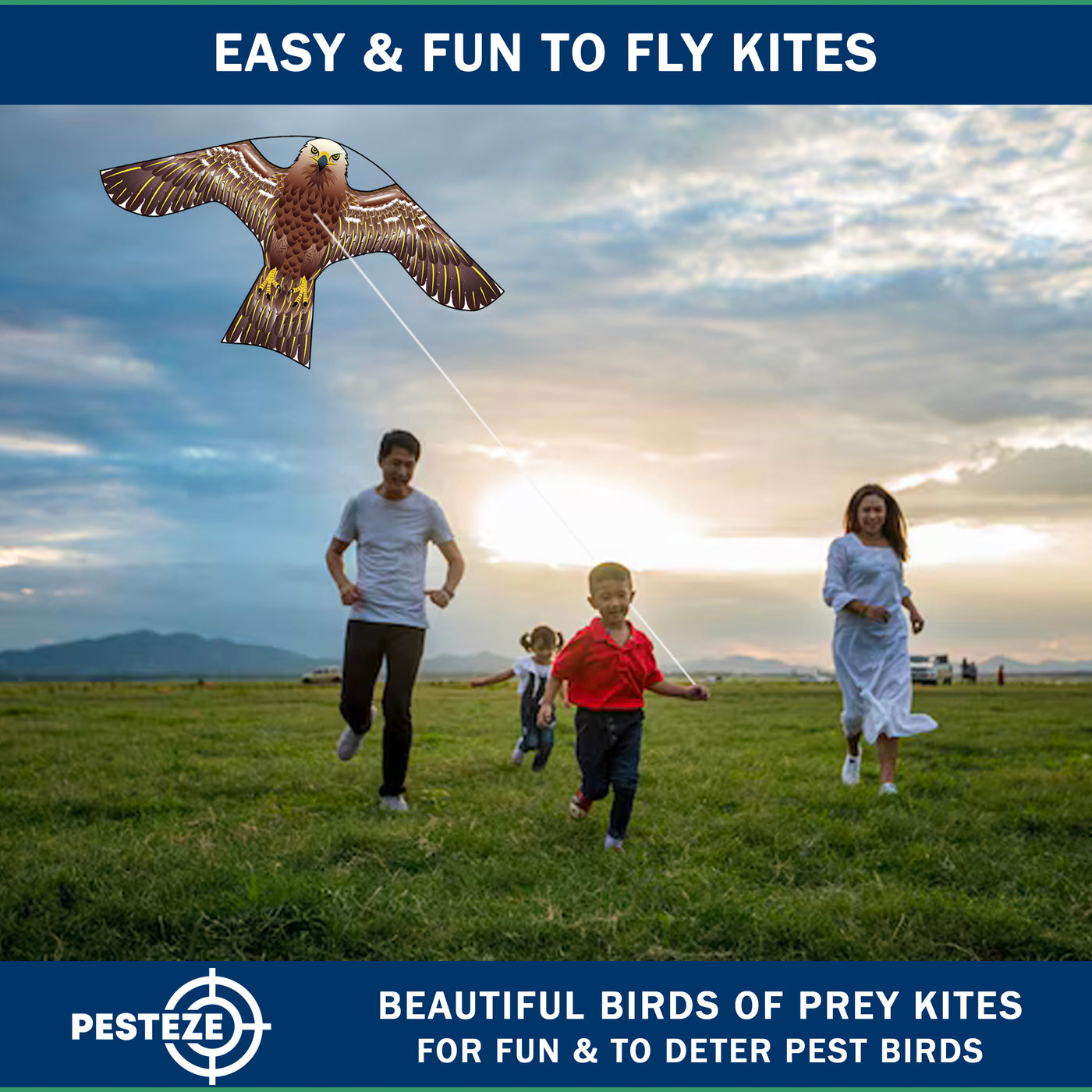 PESTEZE® USA [2 Pack Brown Color] Hawk Kite 47x27 Inch. EZ to Fly Fun Kite for Kids & Adults. Provides Humane Bird Deterrence in Yards & Farms. Protects Vegetables, Fruits & Crops from Pest Birds & Critters