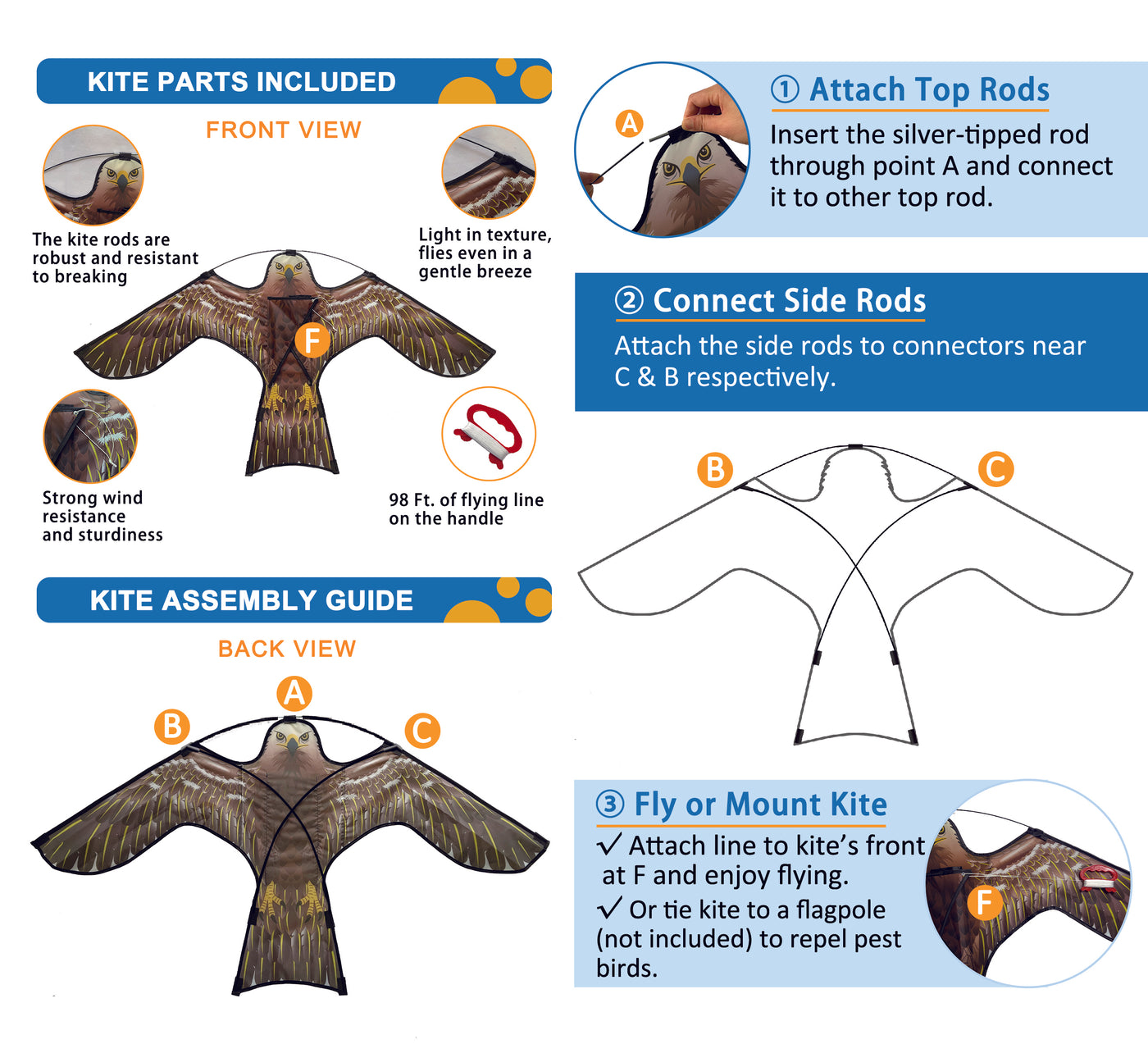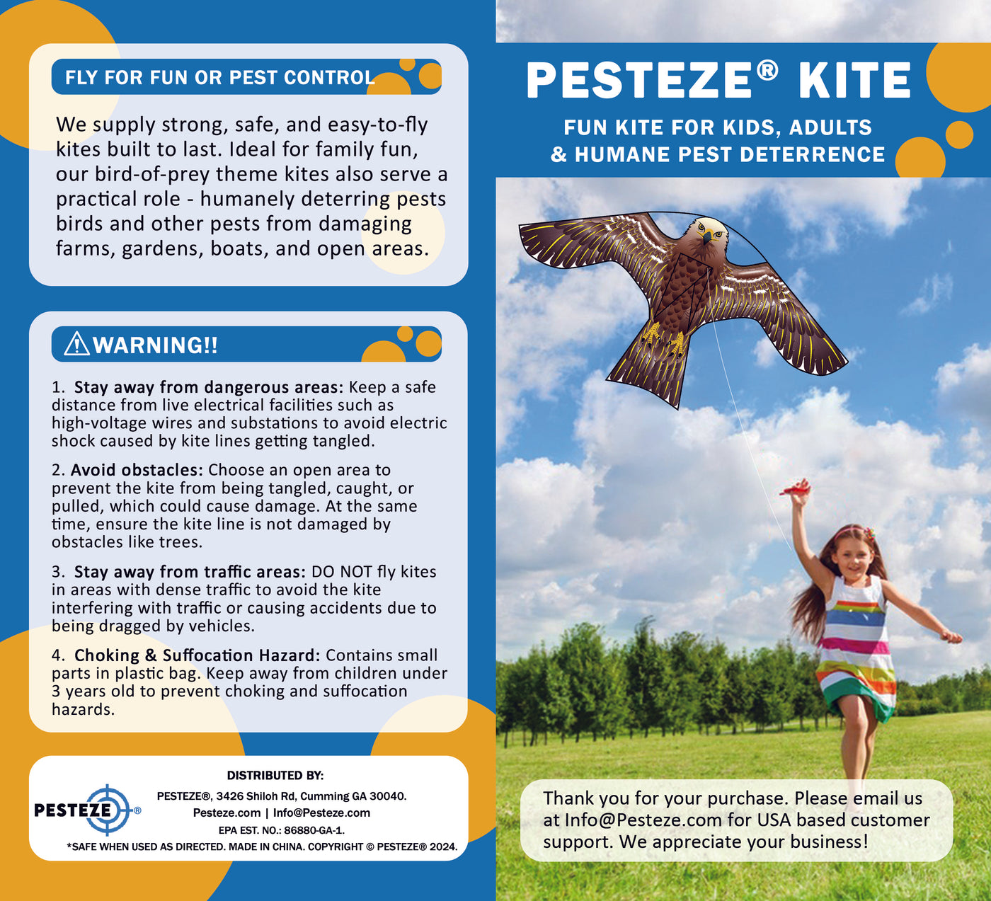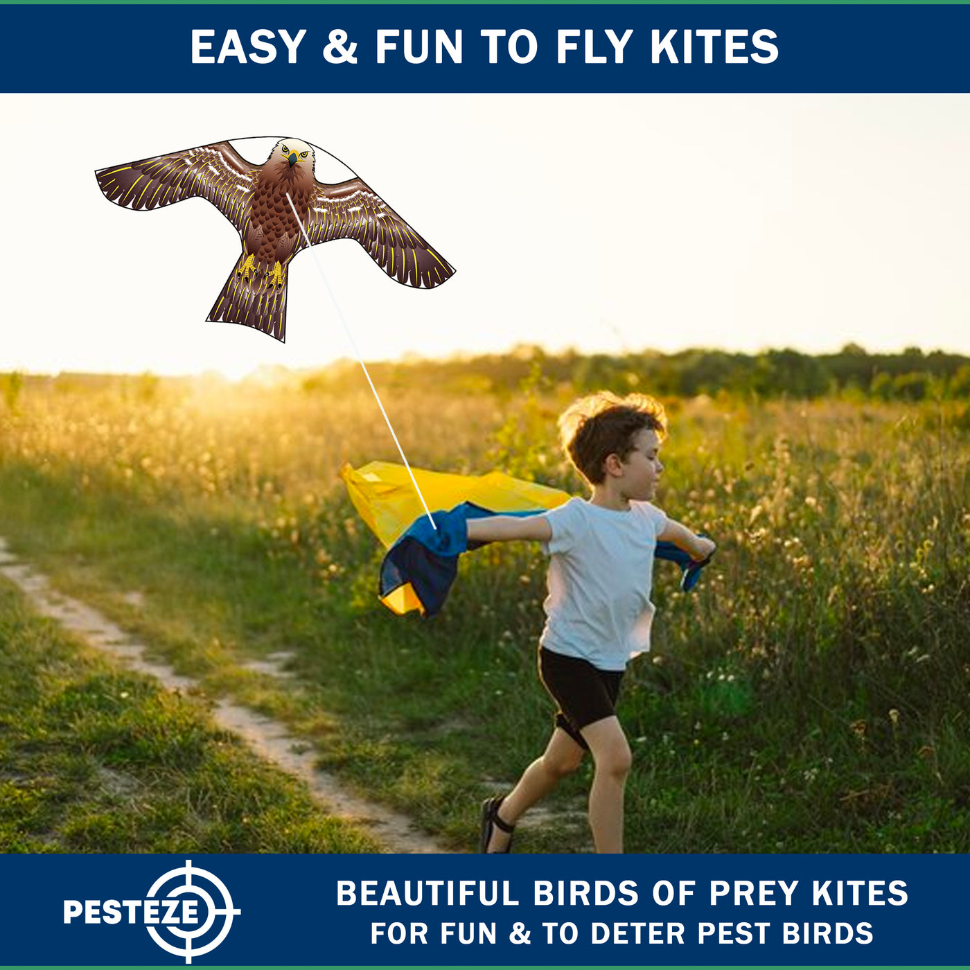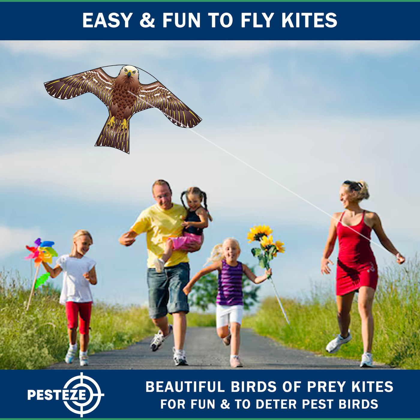 PESTEZE® USA [2 Pack Brown Color] Hawk Kite 47x27 Inch. EZ to Fly Fun Kite for Kids & Adults. Provides Humane Bird Deterrence in Yards & Farms. Protects Vegetables, Fruits & Crops from Pest Birds & Critters
