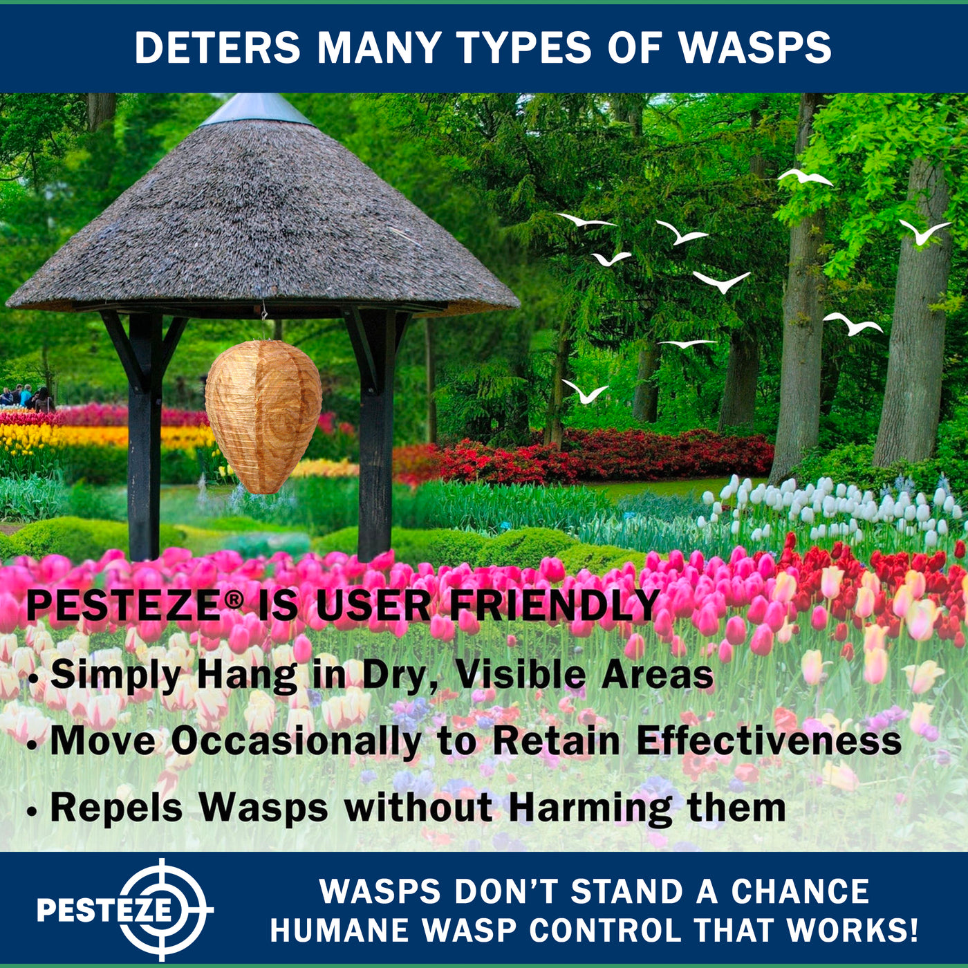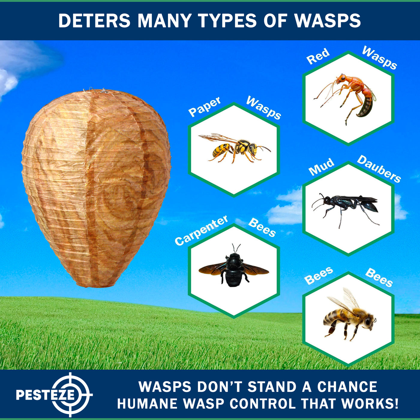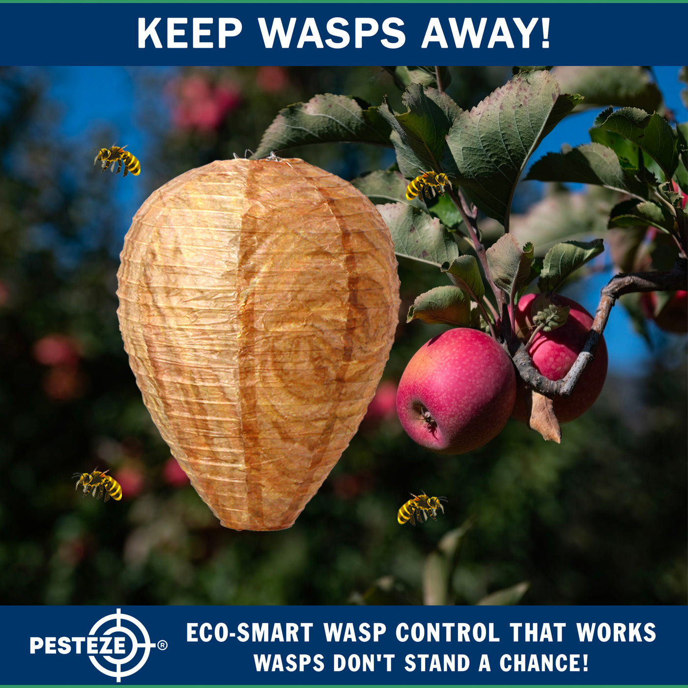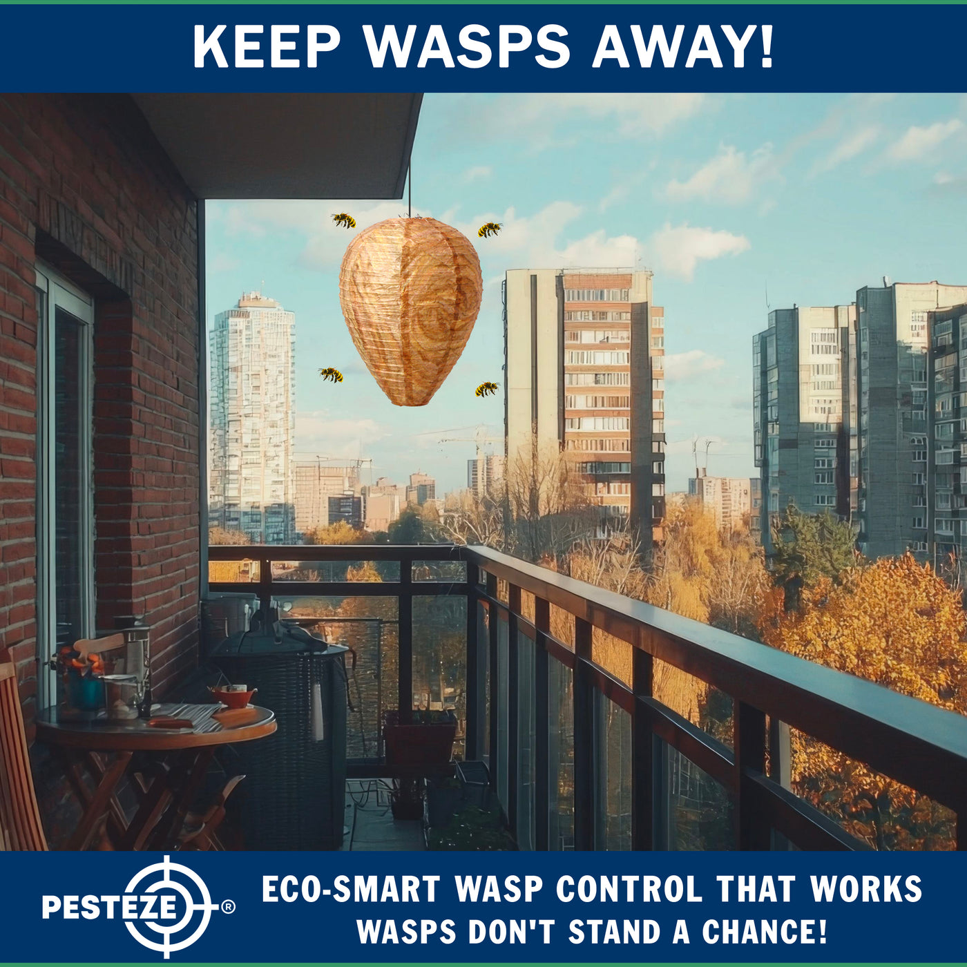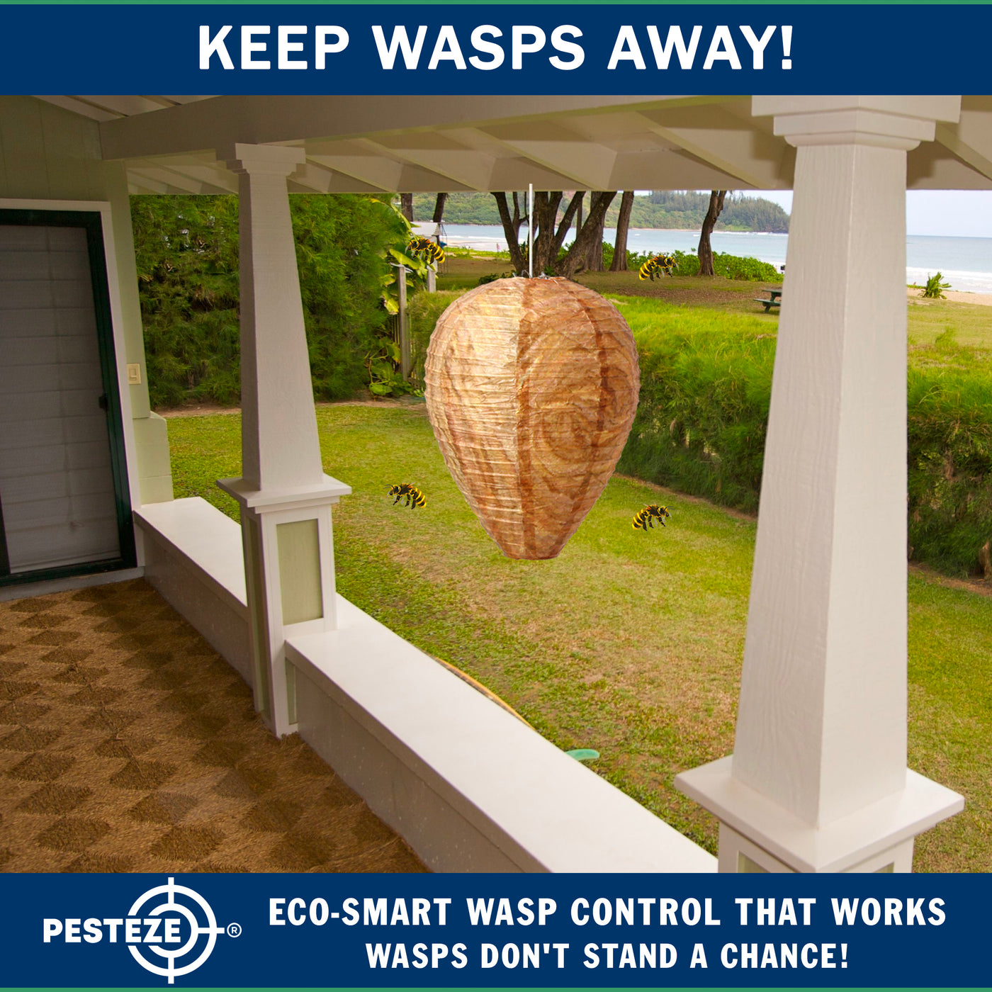 Many wasp and hornet species exhibit territorial behavior and avoid building nests close to an existing colony. The PESTEZE® decoy nest visually resembles a naturally occupied hive, signaling to scouting insects that the area is already claimed.