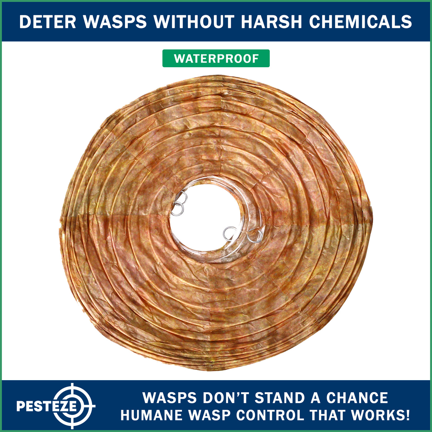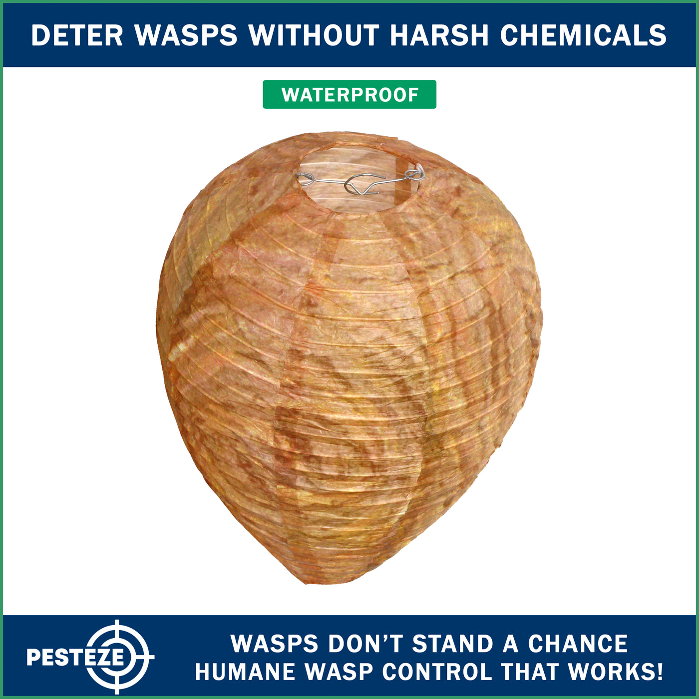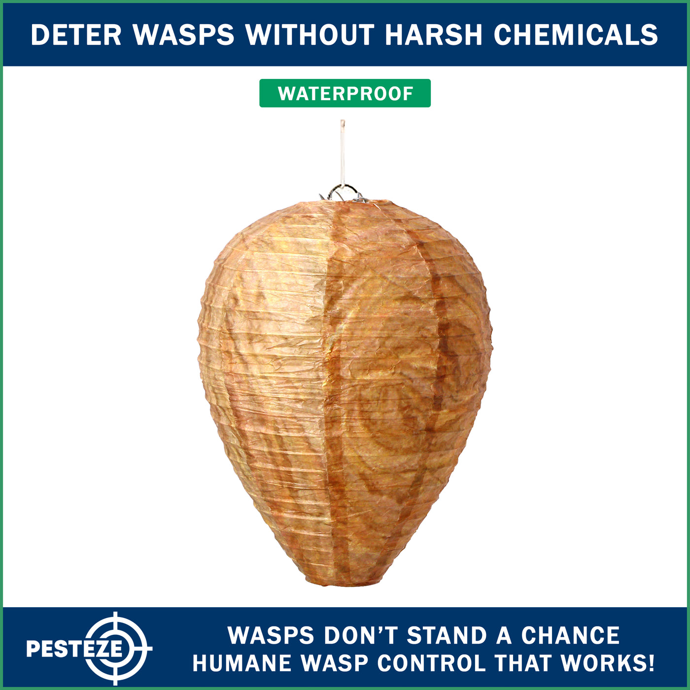 PESTEZE® USA Brown Waterproof Hanging Wasp Decoy Nest is a behavior-based outdoor pest deterrent designed to discourage wasps, hornets, and yellow jackets from nesting near your home. This eco-friendly pest control solution uses natural hive simulation to support safe home pest prevention without sprays or chemicals. Ideal for patios, gardens, farms, and outdoor structures, it provides chemical-free protection through visual territorial cues. As a USA brand, PESTEZE® is American-owned and backed by responsive U.S.-based customer support you can trust.