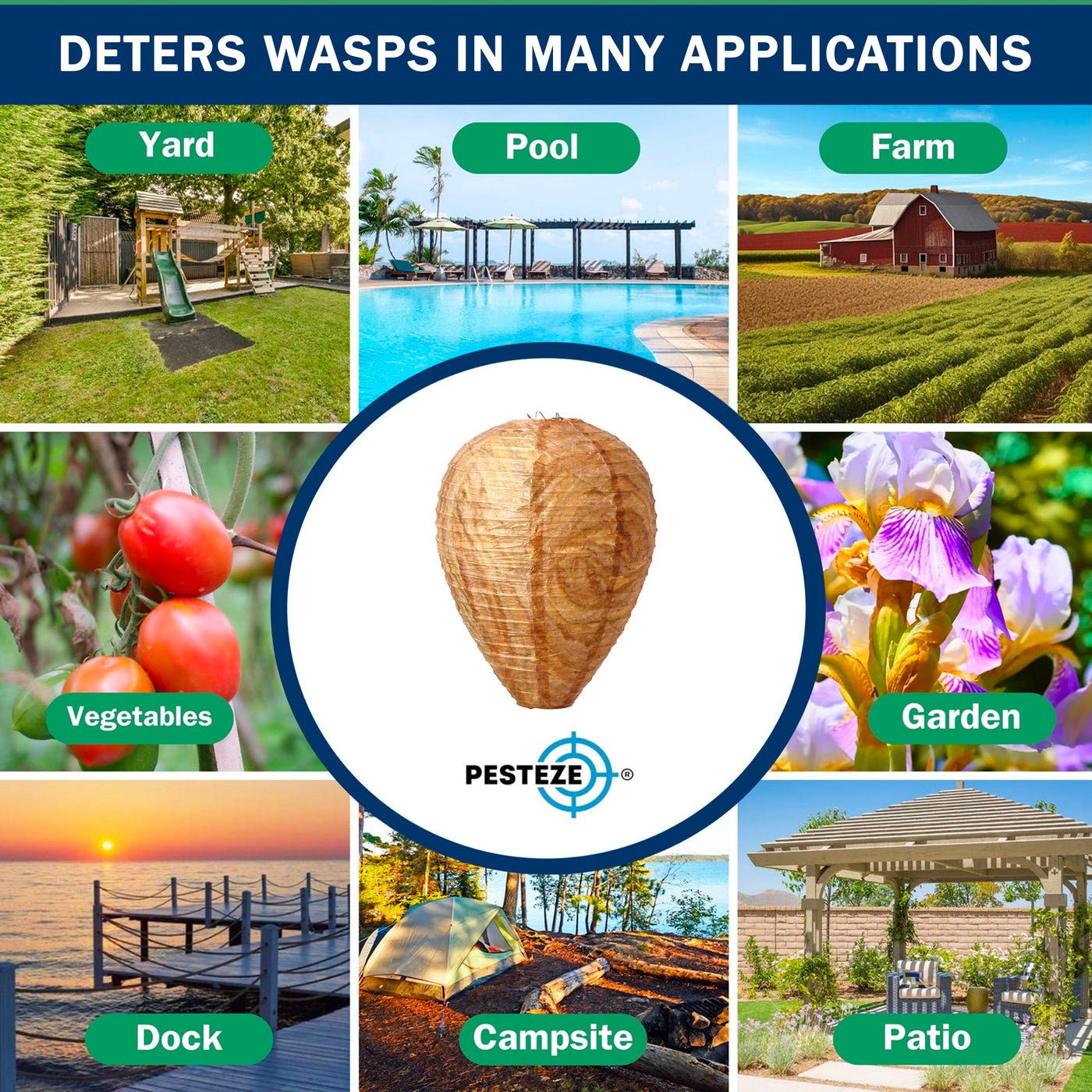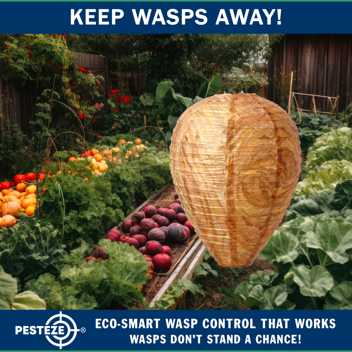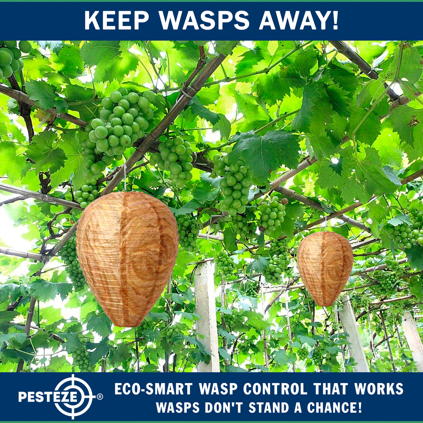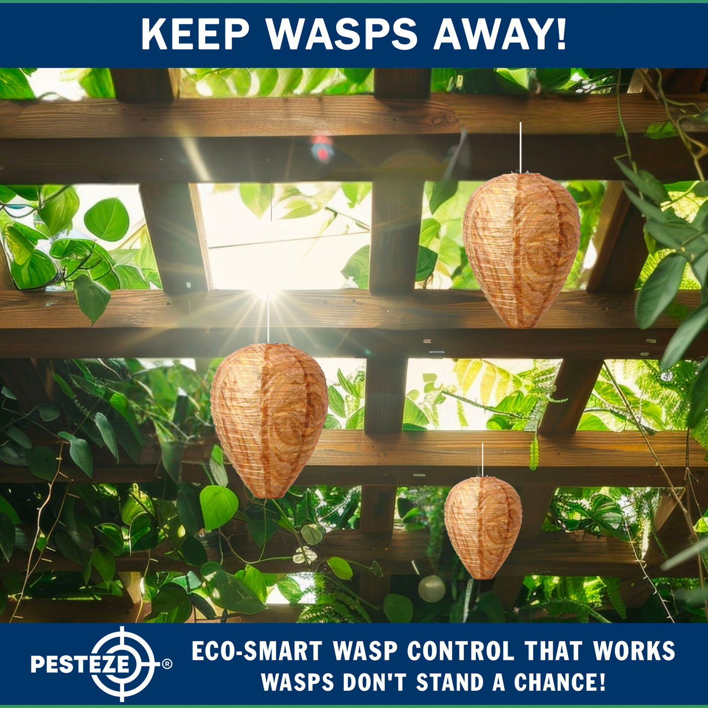 PESTEZE® USA Brown Waterproof Hanging Wasp Decoy Nest is a behavior-based outdoor pest deterrent designed to discourage wasps, hornets, and yellow jackets from nesting near your home. This eco-friendly pest control solution uses natural hive simulation to support safe home pest prevention without sprays or chemicals. Ideal for patios, gardens, farms, and outdoor structures, it provides chemical-free protection through visual territorial cues. As a USA brand, PESTEZE® is American-owned and backed by responsive U.S.-based customer support you can trust.