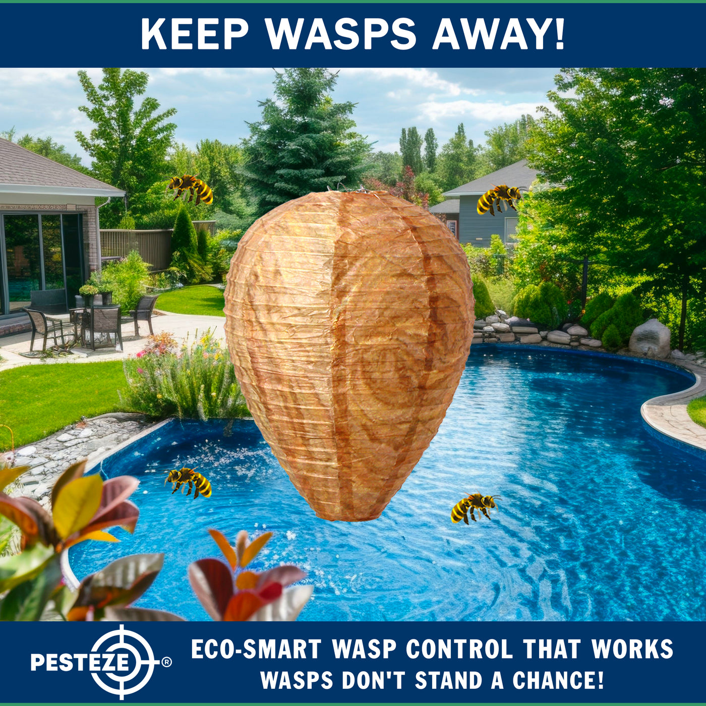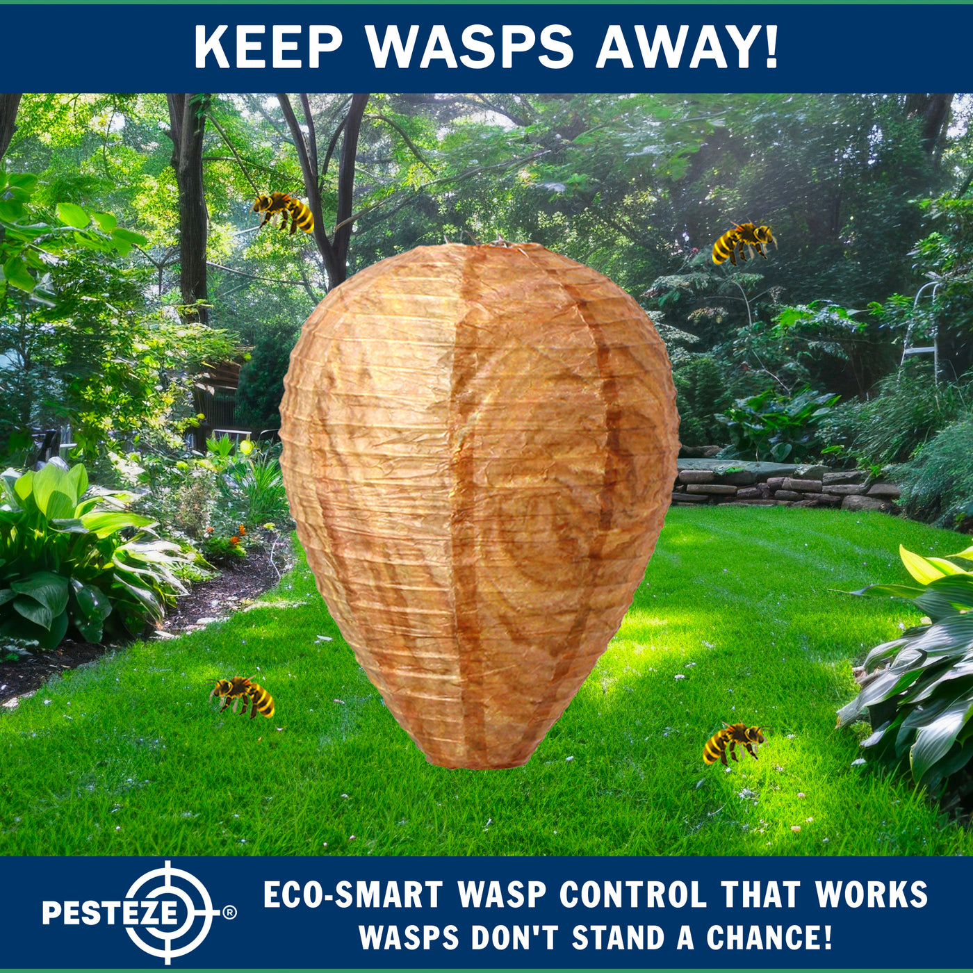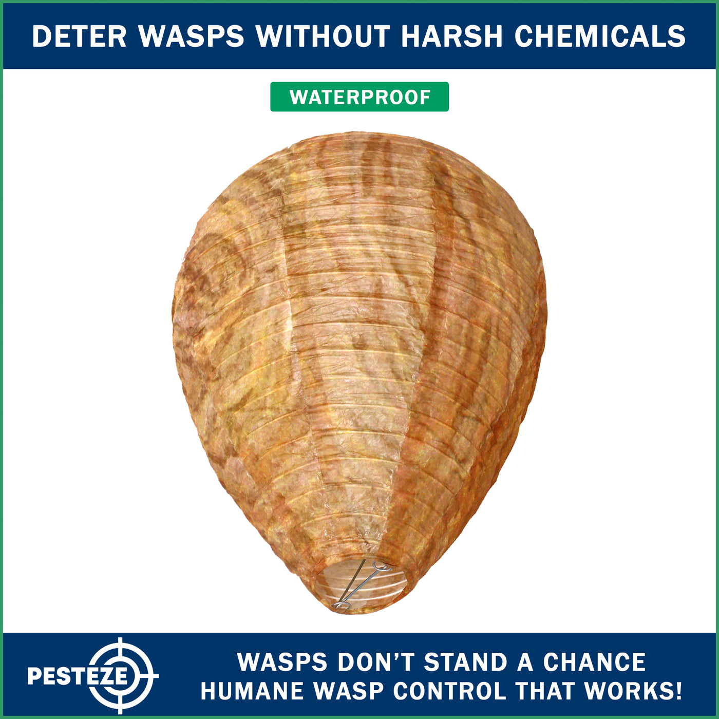 Choose a smarter, humane way to discourage wasps, hornets, and yellow jackets. The PESTEZE® USA Brown Waterproof Hanging Wasp Decoy Nest delivers eco-friendly, chemical-free protection through nature-inspired design—backed by a trusted American-owned brand with U.S.-based customer support.