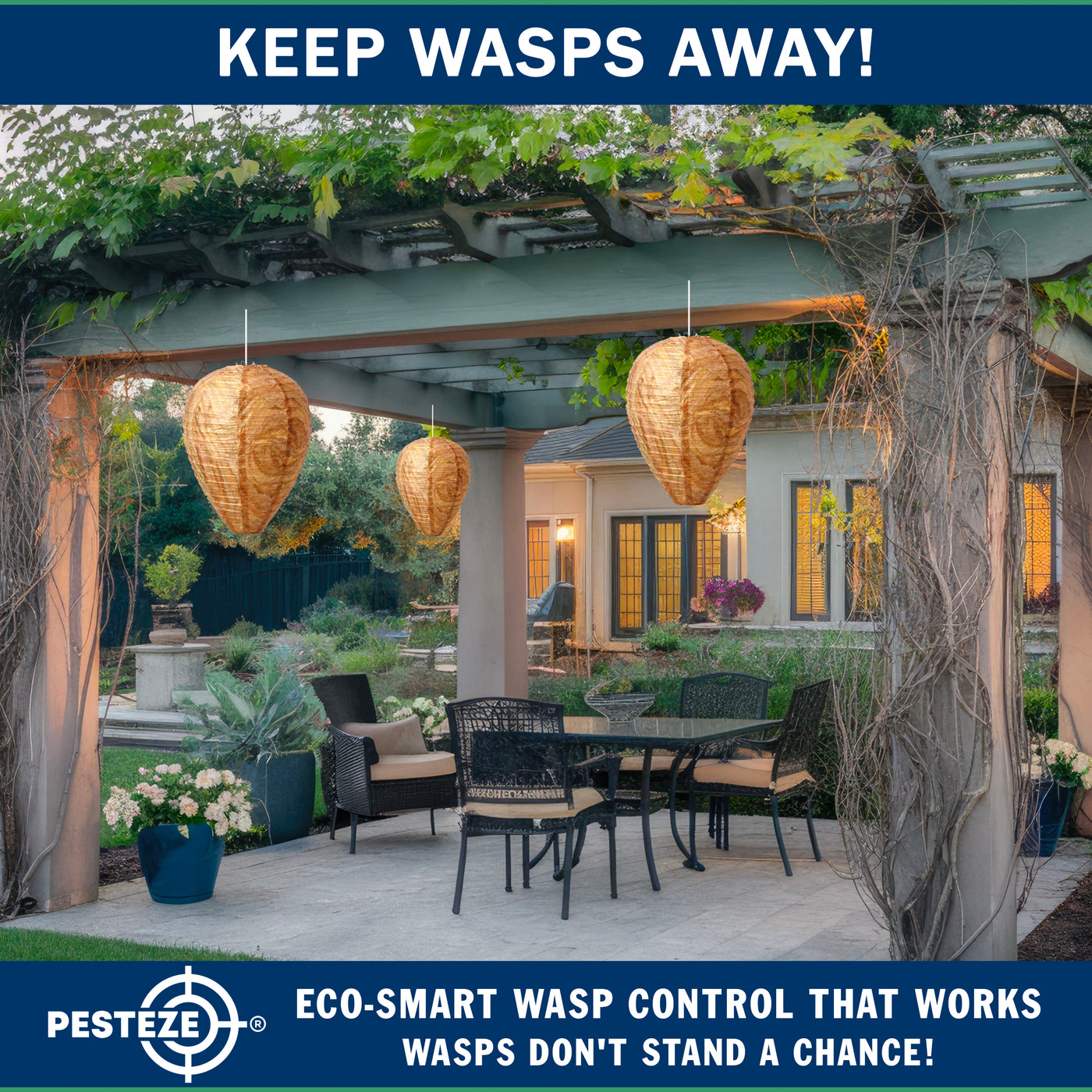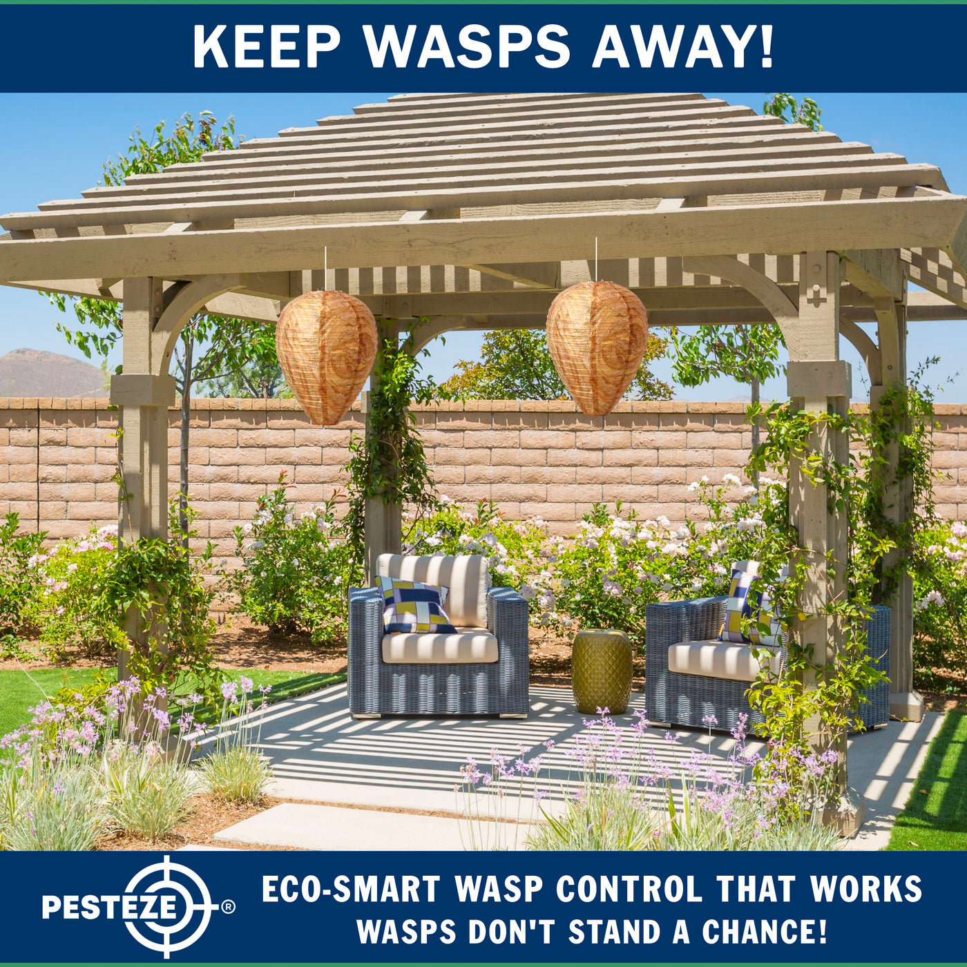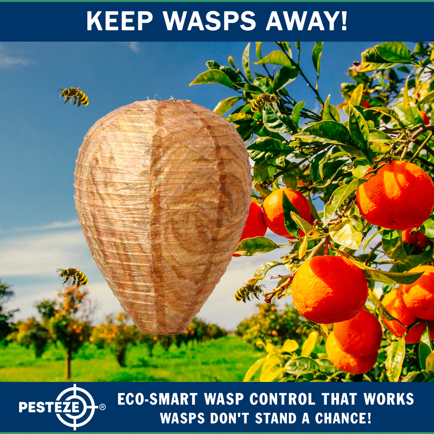 Choose a smarter, humane way to discourage wasps, hornets, and yellow jackets. The PESTEZE® USA Brown Waterproof Hanging Wasp Decoy Nest delivers eco-friendly, chemical-free protection through nature-inspired design—backed by a trusted American-owned brand with U.S.-based customer support.