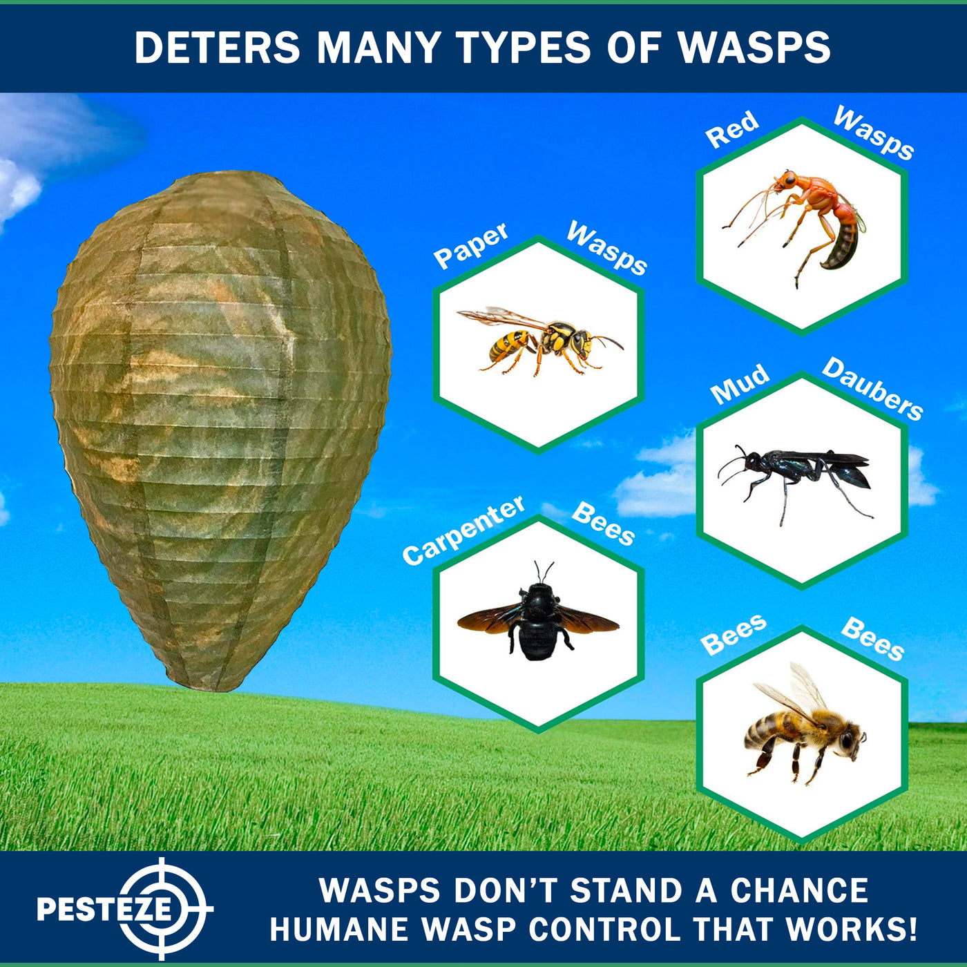 Many wasp and hornet species are territorial and avoid building nests near an existing colony. The decoy visually simulates a rival hive, encouraging scouting insects to relocate.