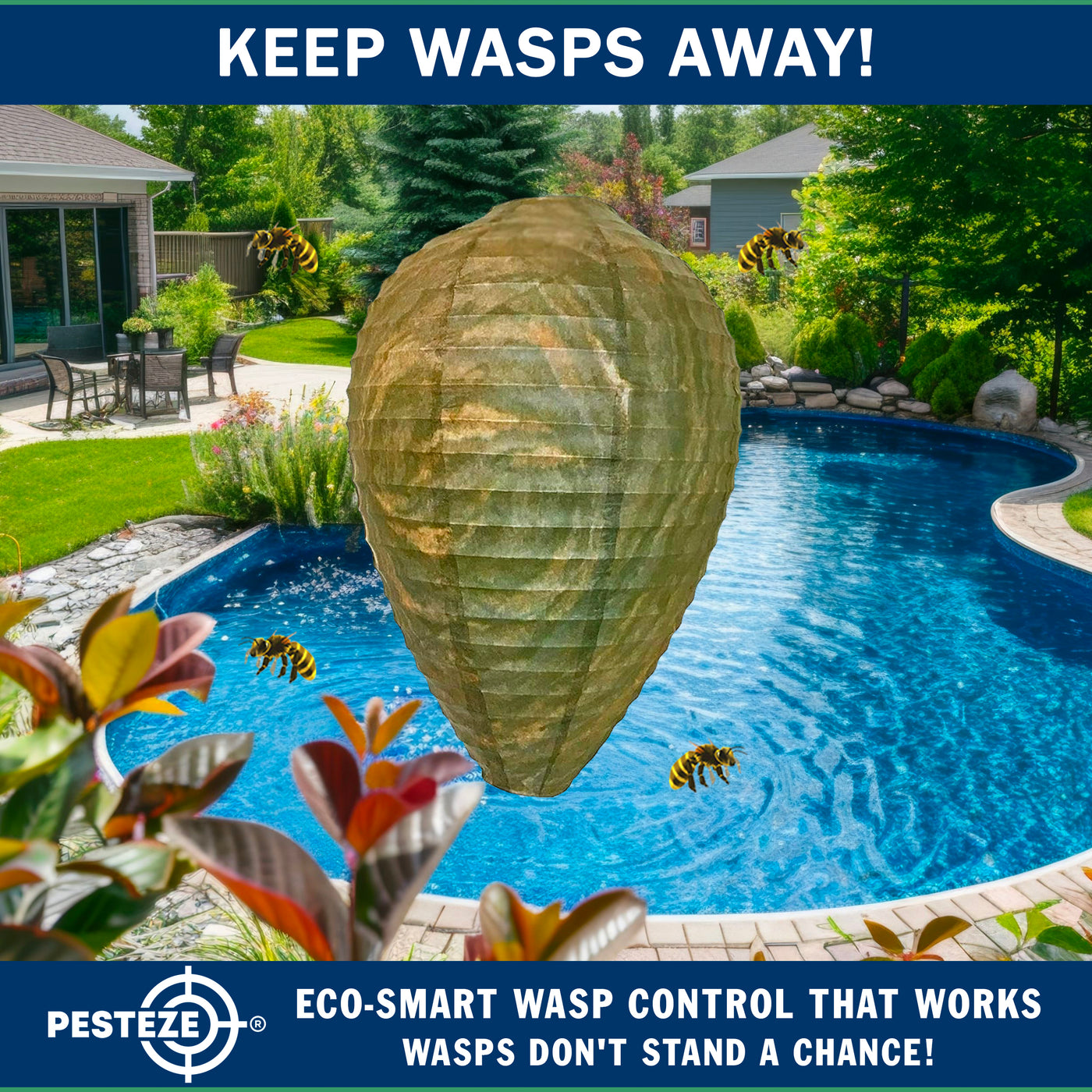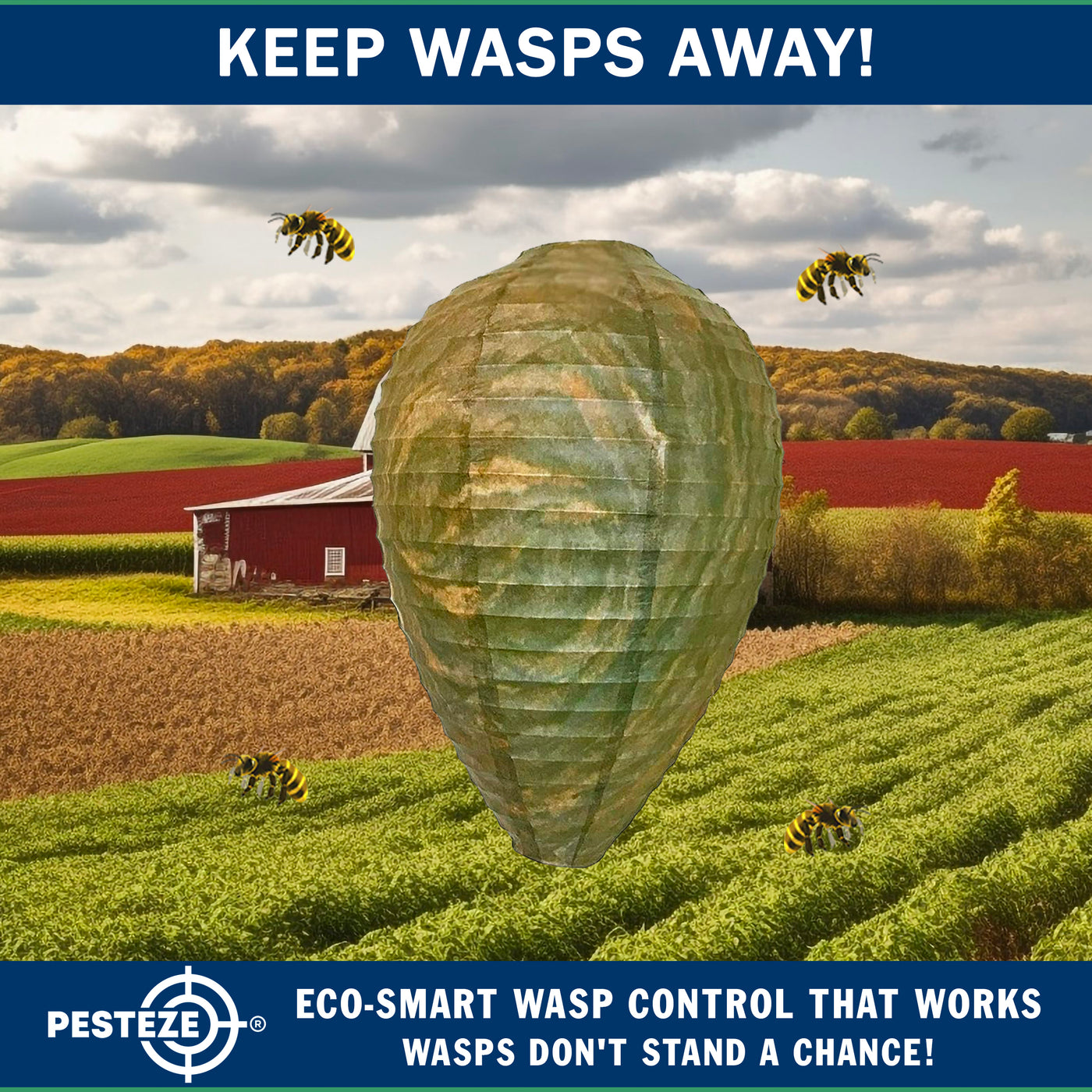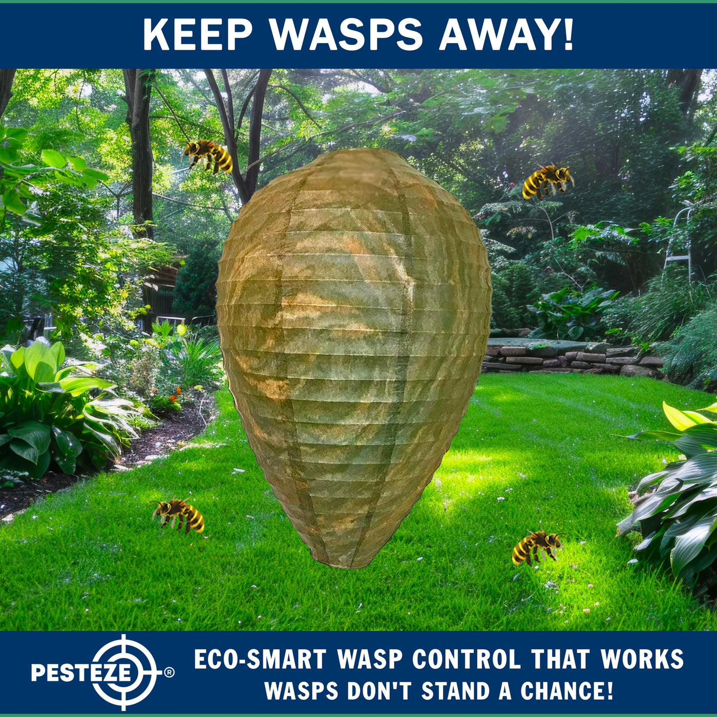 The PESTEZE® USA Green Camo Paper Hanging Wasp Decoy Nest [2 Pack] is a behavior-based outdoor pest deterrent designed to help discourage wasps, hornets, and yellow jackets from nesting near your home. By simulating an established enemy hive, this chemical-free solution supports humane repellent strategies for patios, gardens, and outdoor structures. As a USA brand, PESTEZE® is American-owned and backed by responsive U.S.-based customer support you can trust. Ideal for eco-friendly pest control and safe home pest prevention, this outdoor pest deterrent works with natural insect behavior—not against it.