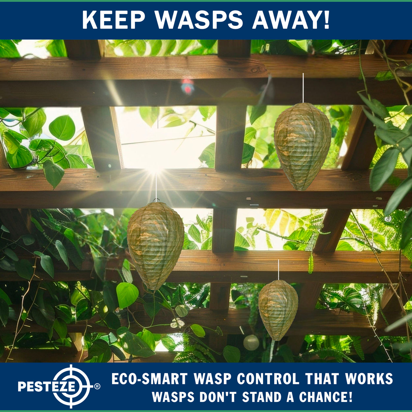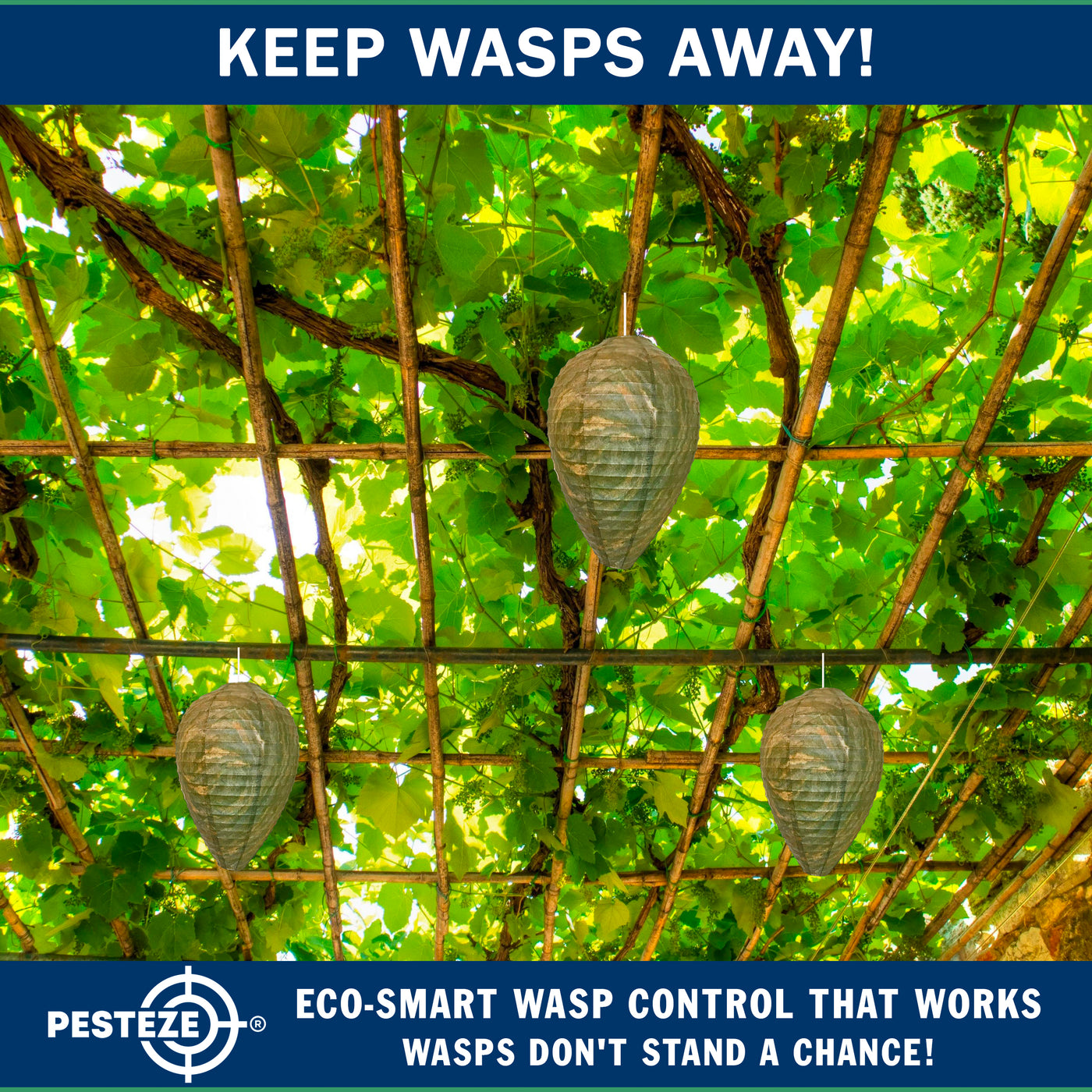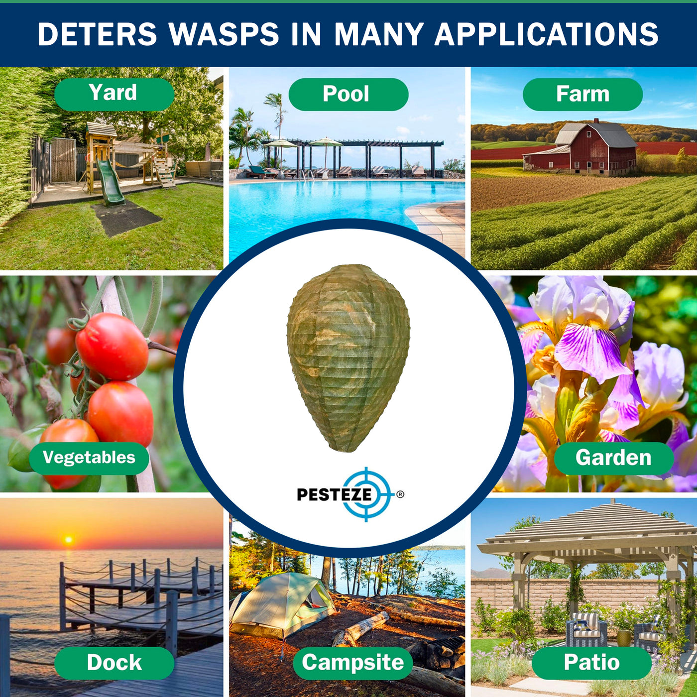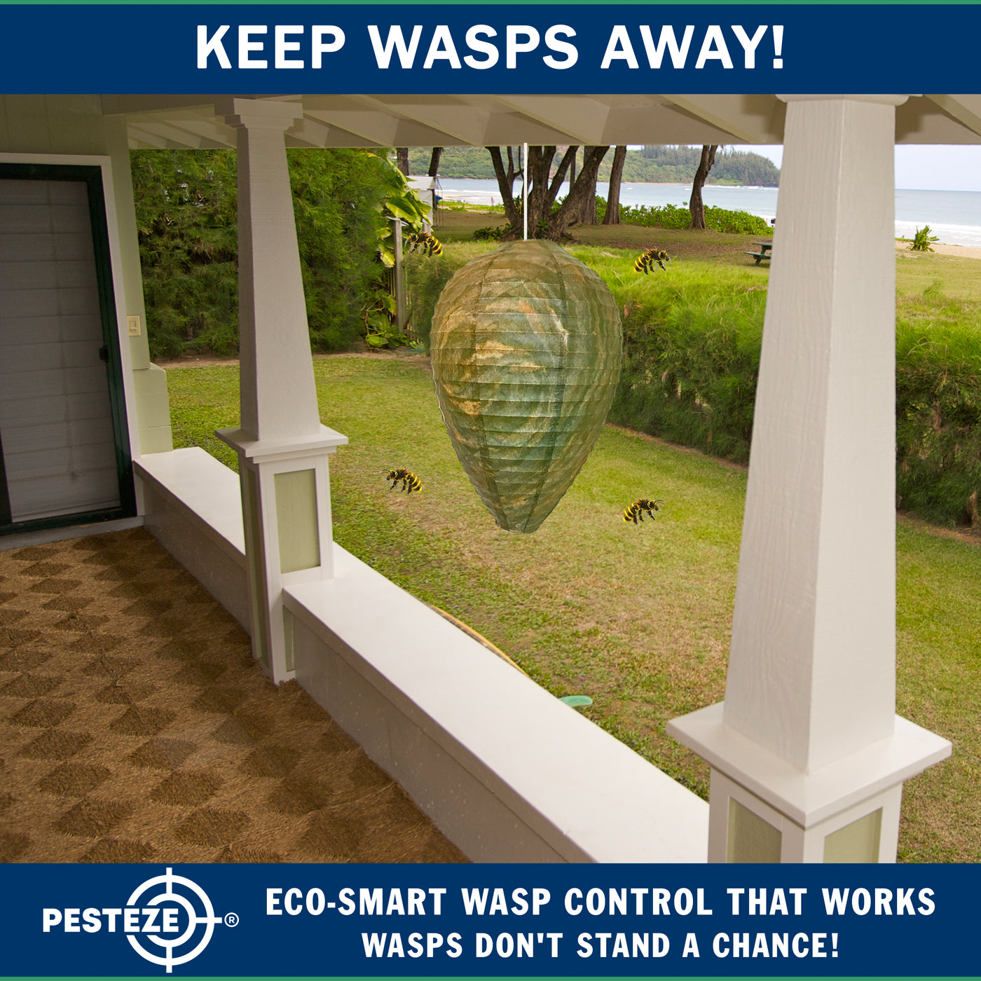 The PESTEZE® USA Green Camo Paper Hanging Wasp Decoy Nest [2 Pack] is a behavior-based outdoor pest deterrent designed to help discourage wasps, hornets, and yellow jackets from nesting near your home. By simulating an established enemy hive, this chemical-free solution supports humane repellent strategies for patios, gardens, and outdoor structures. As a USA brand, PESTEZE® is American-owned and backed by responsive U.S.-based customer support you can trust. Ideal for eco-friendly pest control and safe home pest prevention, this outdoor pest deterrent works with natural insect behavior—not against it.