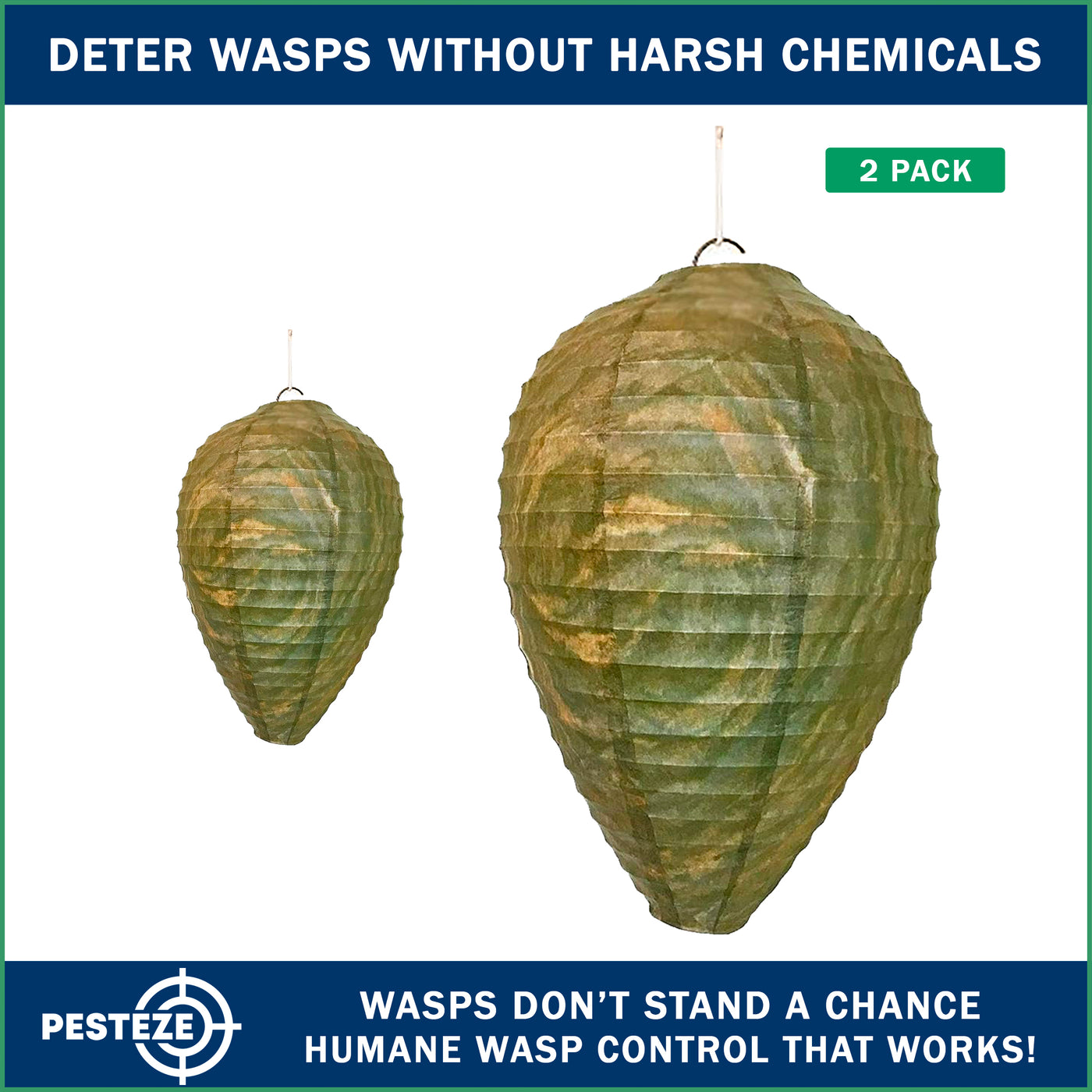 The PESTEZE® USA Green Camo Paper Hanging Wasp Decoy Nest [2 Pack] is a chemical-free outdoor pest deterrent designed to discourage wasps, hornets, and yellow jackets through behavior-based deterrence. By simulating an enemy hive, it supports humane repellent strategies and eco-friendly pest control. Backed by a trusted USA brand with U.S.-based customer support.