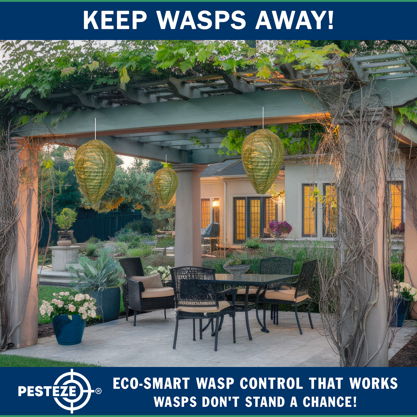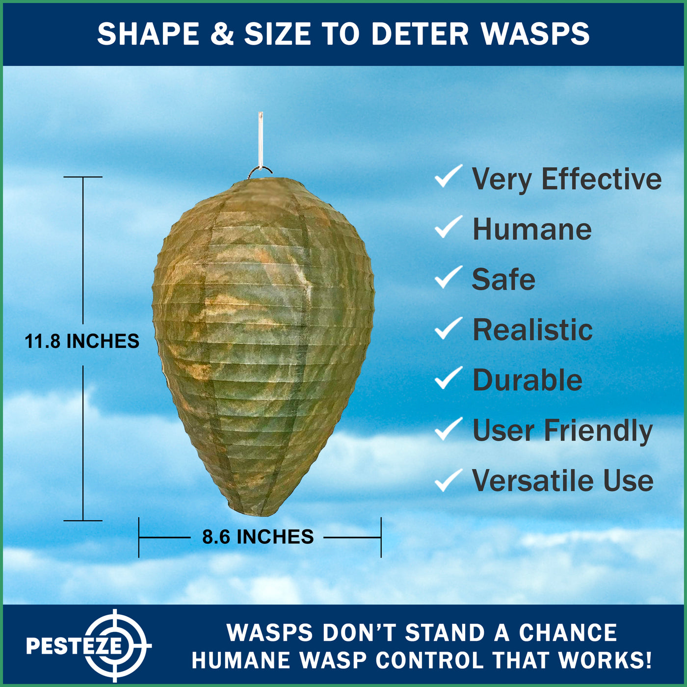 Support safer outdoor spaces with the PESTEZE® USA Green Camo Paper Hanging Wasp Decoy Nest [2 Pack]. This humane, chemical-free deterrent leverages natural territorial behavior to help discourage wasps, hornets, and yellow jackets—backed by a trusted USA brand and reliable U.S.-based customer support.