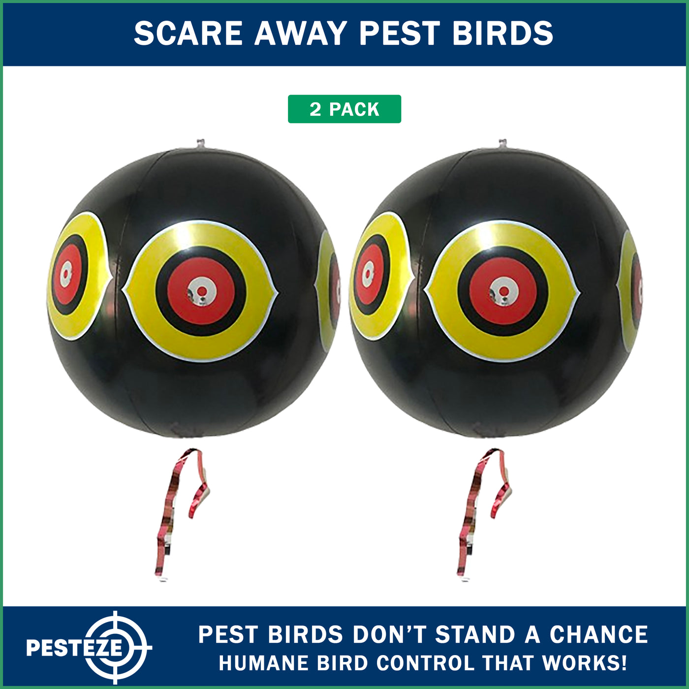 PESTEZE® USA Large 15" Black Bird Predator-Eye Balloon Decoy [2 Pack Black Color] Deters Unwanted Pest Birds like Pigeons, Gulls, Geese & Critters from Pools & Yards Without Harming Them To Protect Property