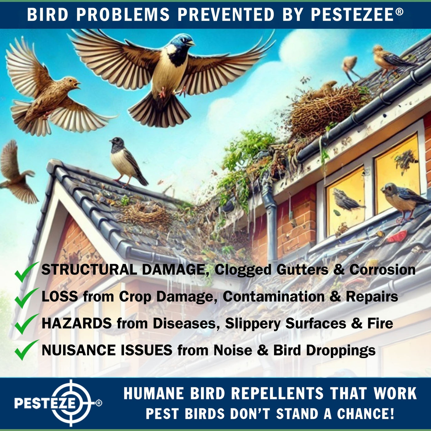 PESTEZE® USA Large 15" White Bird Predator-Eye Balloon Decoy [4 Pack White Color] Deters Unwanted Pest Birds like Pigeons, Gulls, Geese & Critters from Pools & Yards Without Harming Them To Protect Property