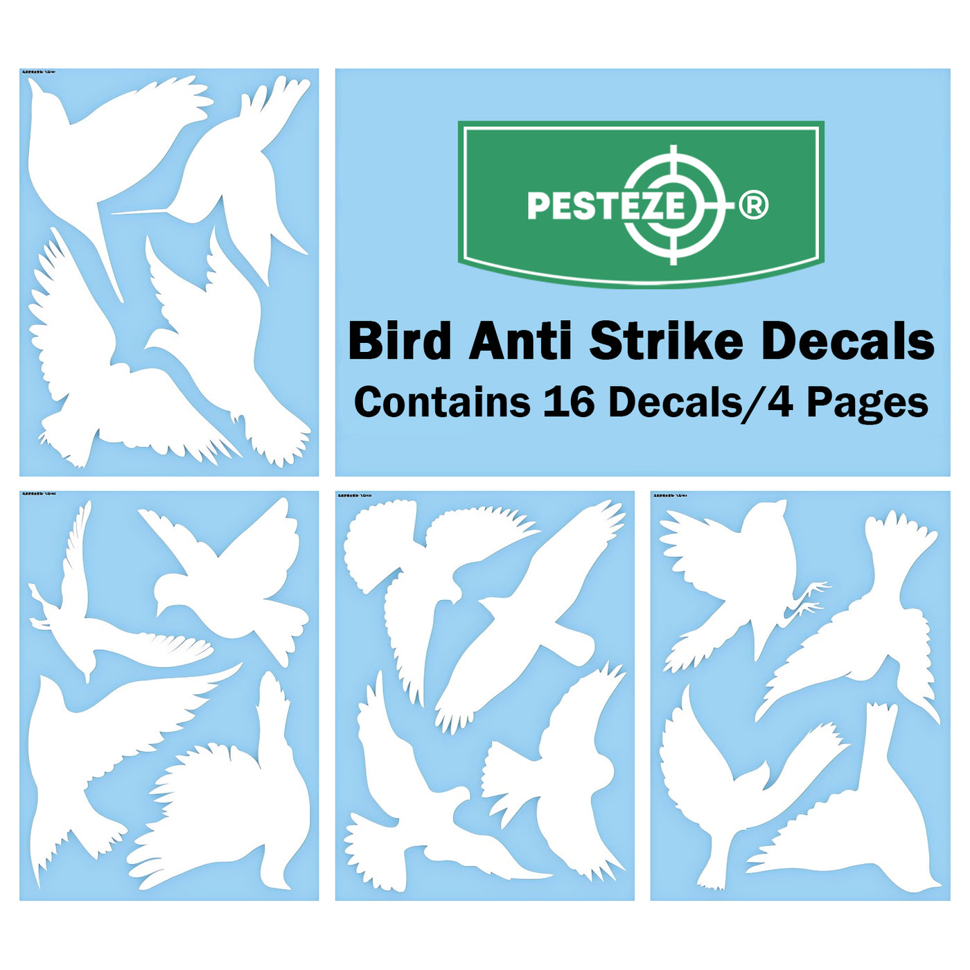 PESTEZE® UV Reflective Bird Anti Collision Static Cling Decals for Windows to Prevent Wild Bird Strikes [16 Decals/4 Pages] Bird Alert Window Decals Save Birds from Window Collisions & Help them Soar
